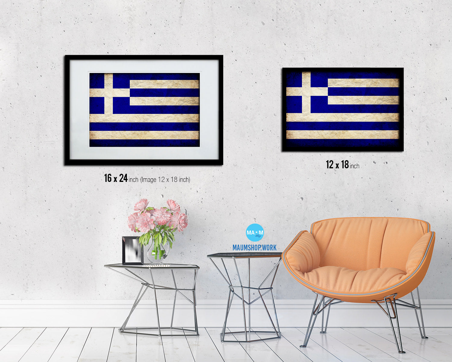 Greece Country Vintage Flag Wood Framed Print Wall Art Decor Gifts