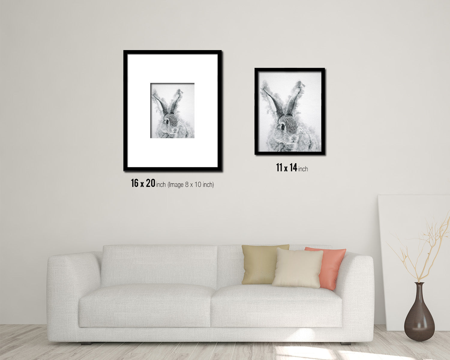 Grey Rabbit Animal Painting Print Framed Art Home Wall Decor Gifts