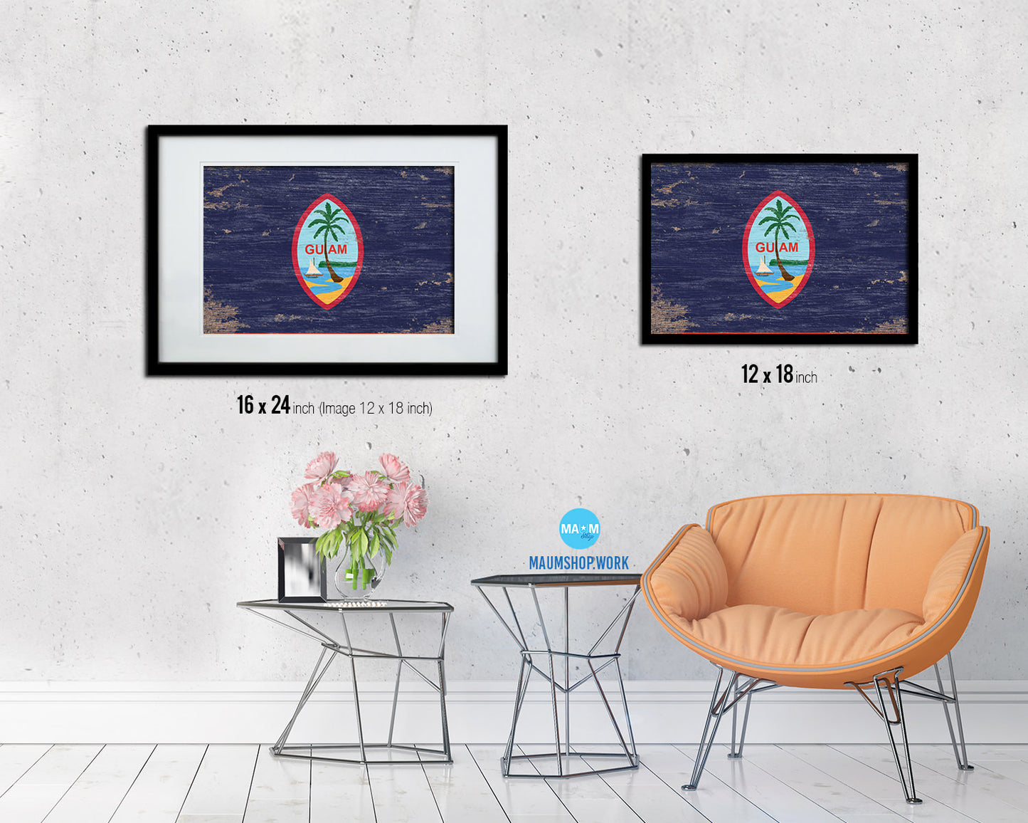 Guam US Territory Shabby Chic Flag Framed Prints Decor Wall Art Gifts