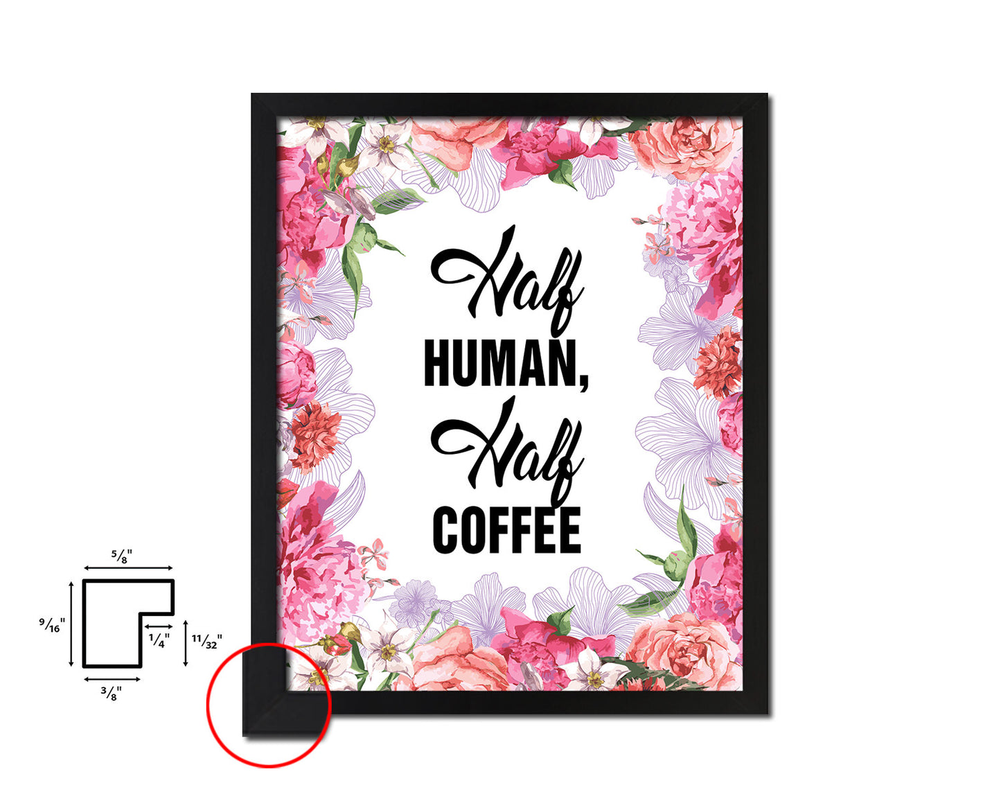 Half human, half coffee Quote Framed Artwork Print Wall Decor Art Gifts