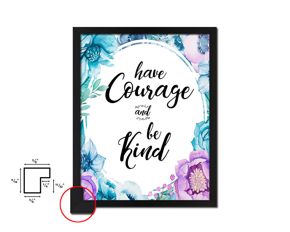 Have courage and be kind Quote Boho Flower Framed Print Wall Decor Art