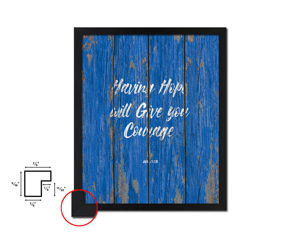 Having hope will give you courage, Job 11:18 Quote Framed Print Home Decor Wall Art Gifts