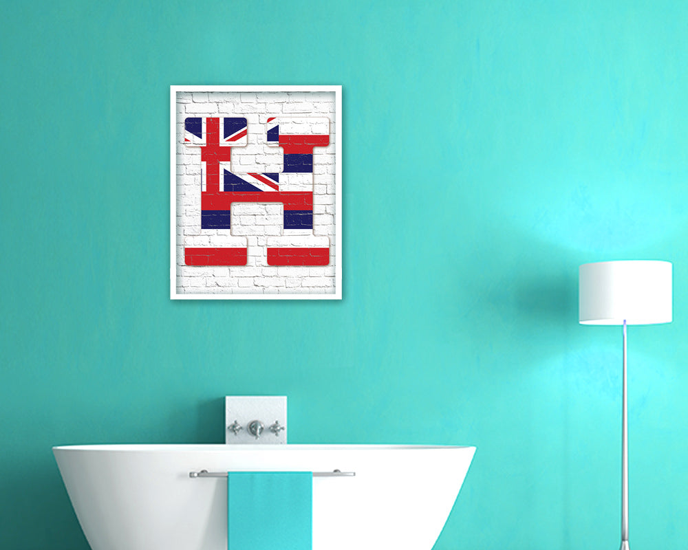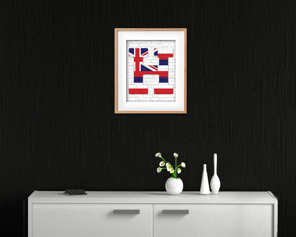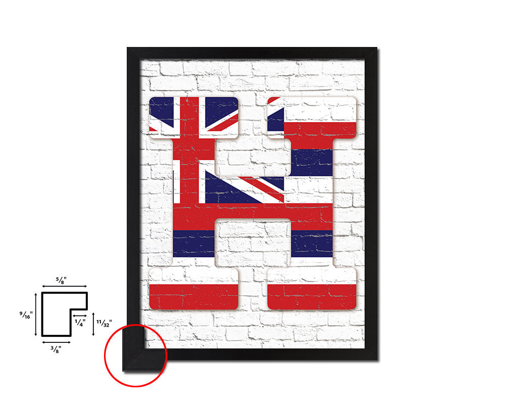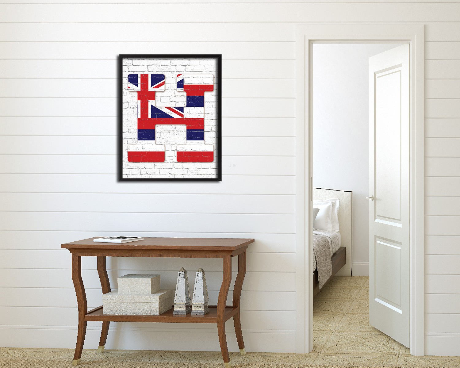 Hawaii State Initial Flag Wood Framed Paper Print Decor Wall Art Gifts, Brick