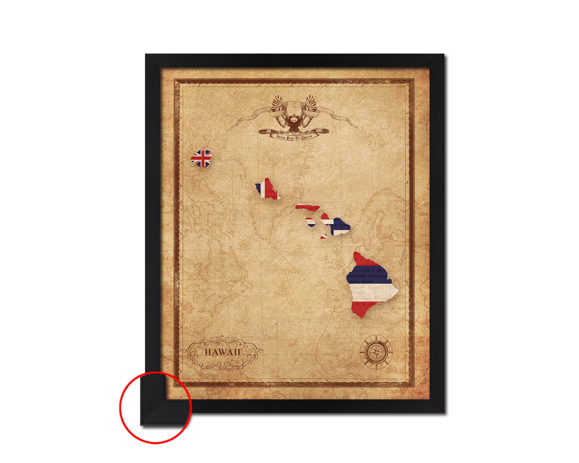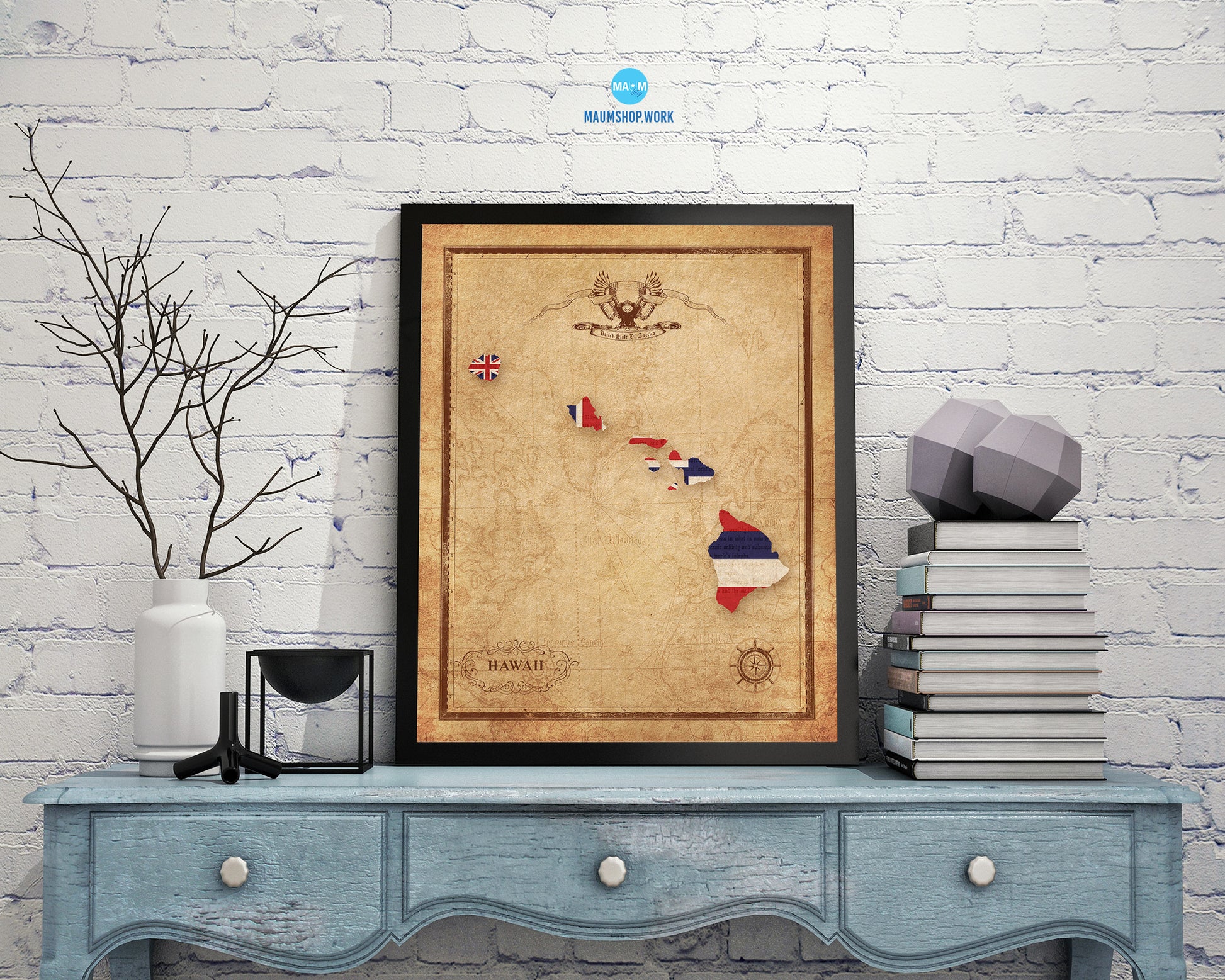 Hawaii State Vintage Map Wood Framed Paper Print Wall Art Decor Gifts