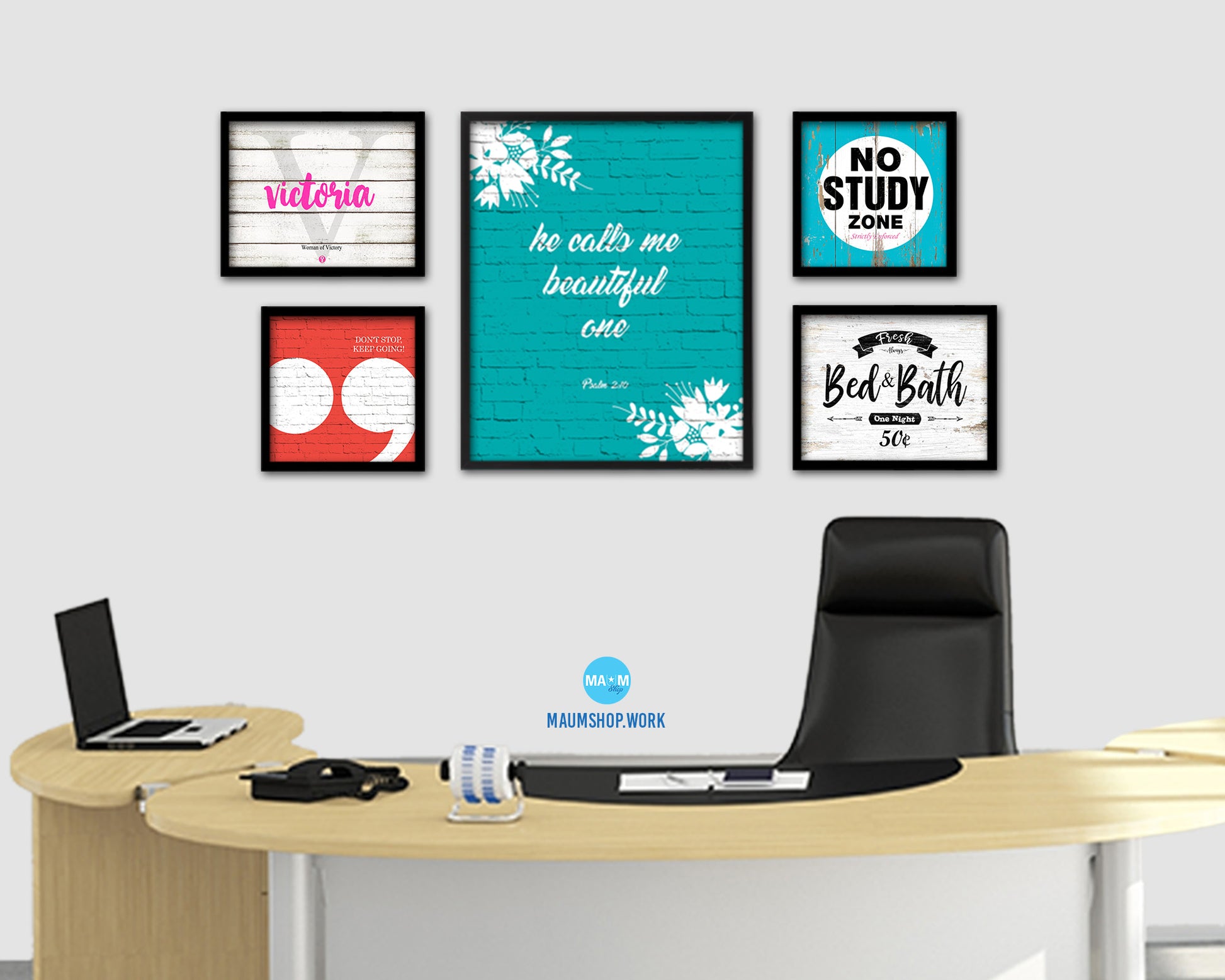 He calls me beautiful one, Psalm 2:10 Quote Framed Print Home Decor Wall Art Gifts