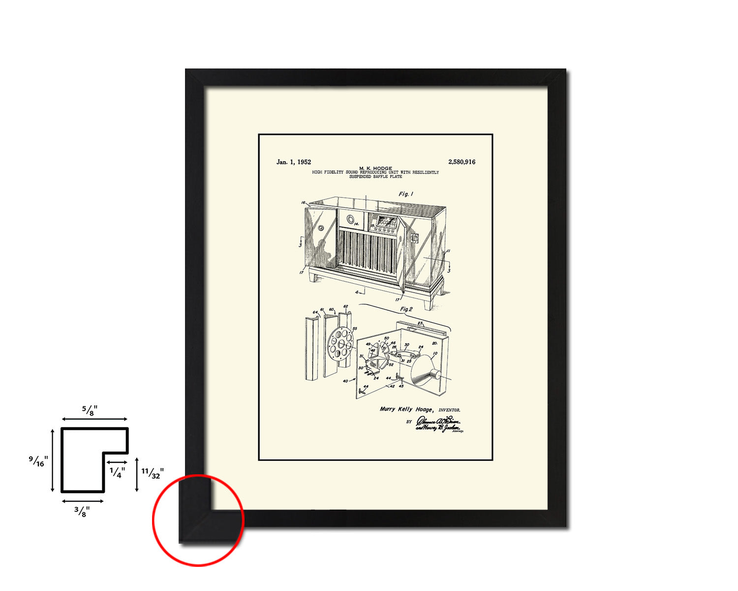 High Fidelity Unit Baffle Plate Sound Patent Artwork Black Frame Print Gifts