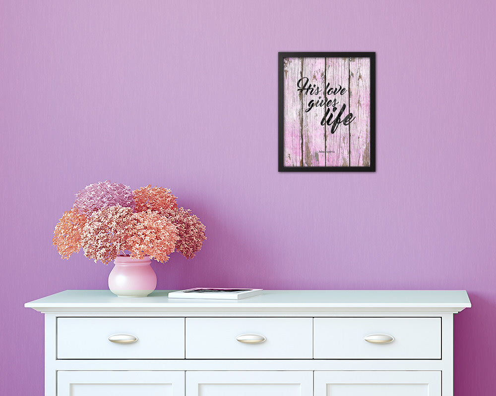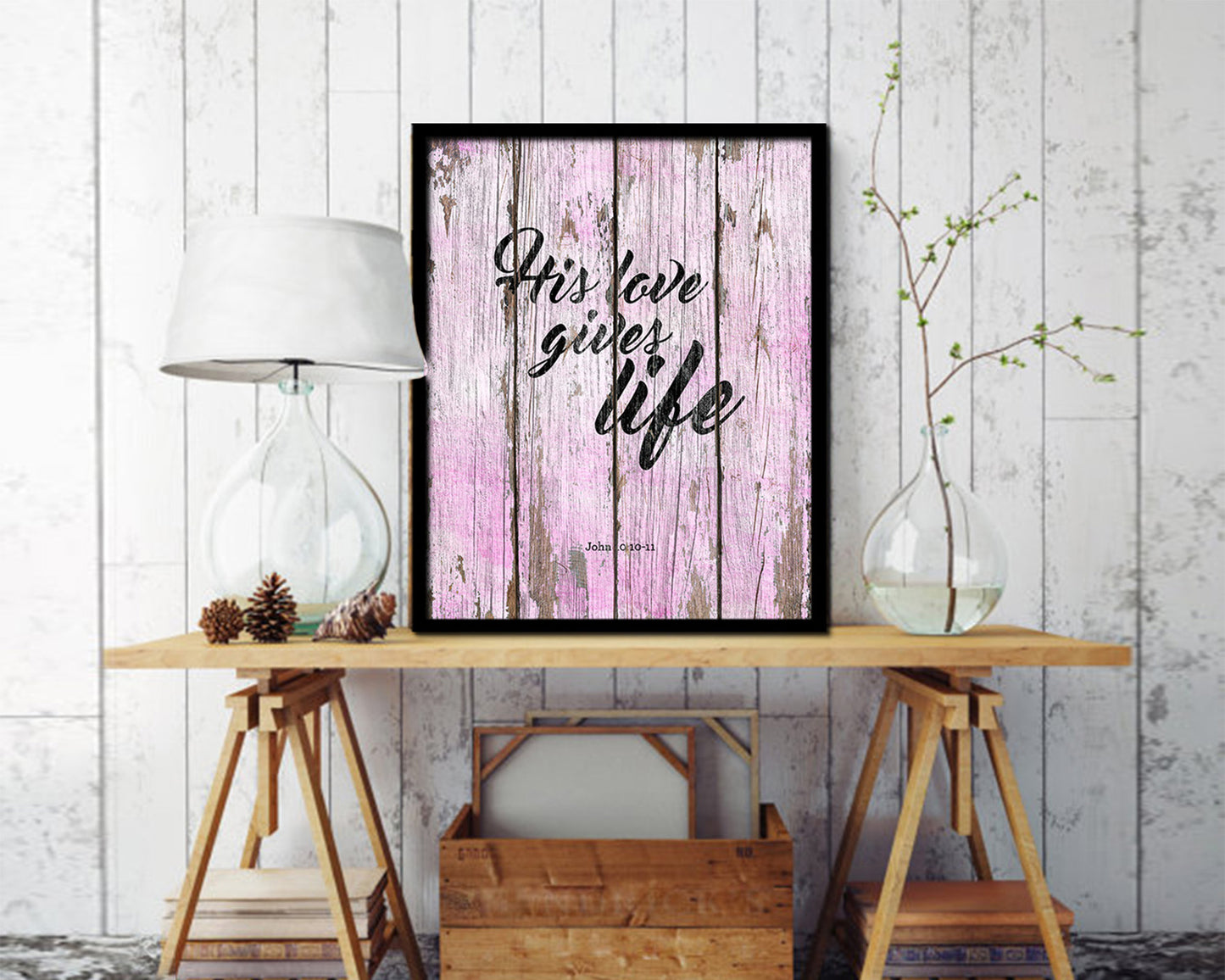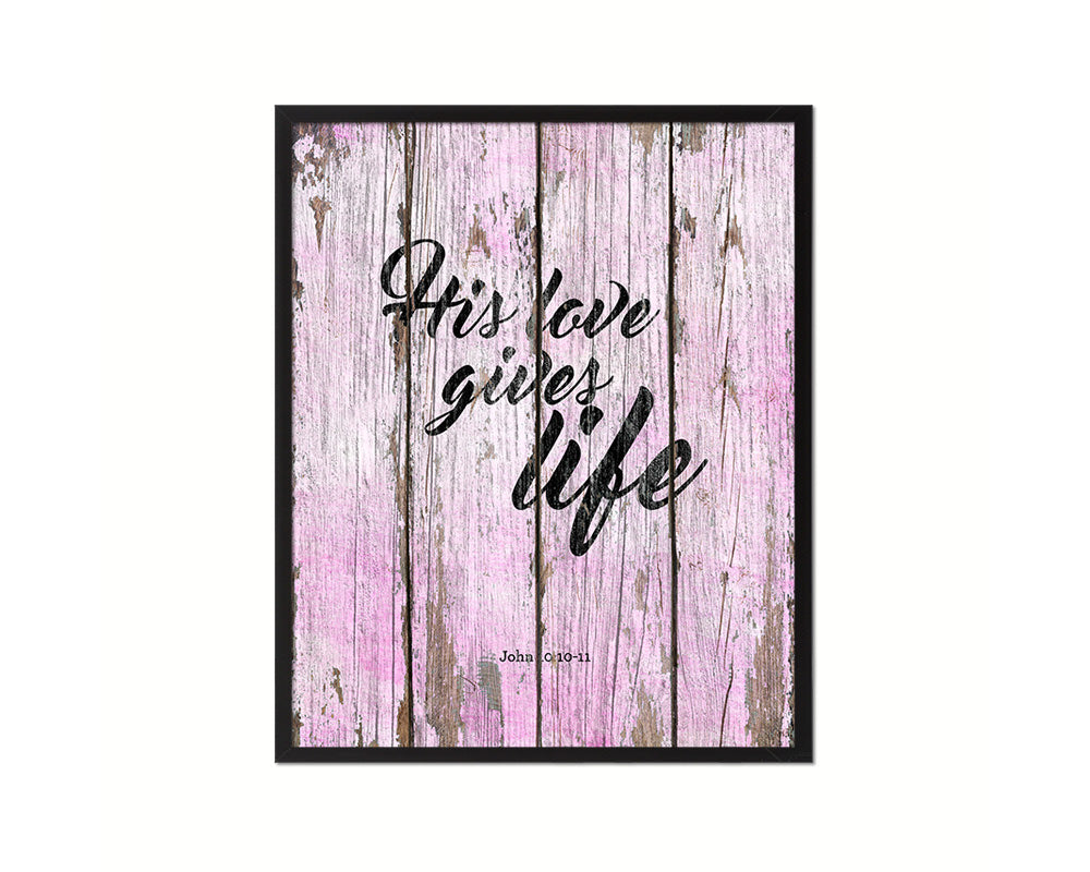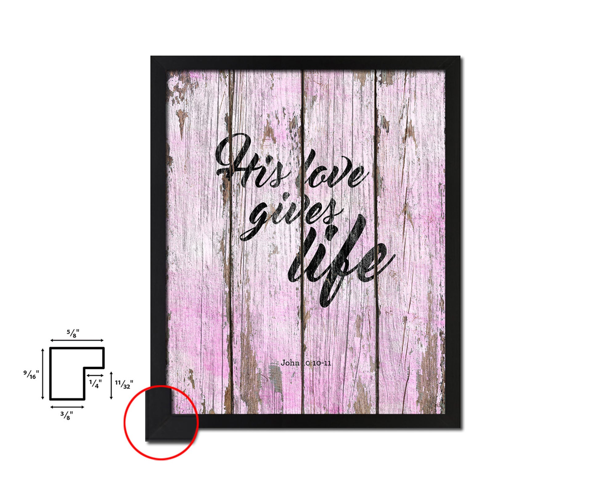His love gives life, John 10:10-11 Quote Wood Framed Print Home Decor Wall Art Gifts