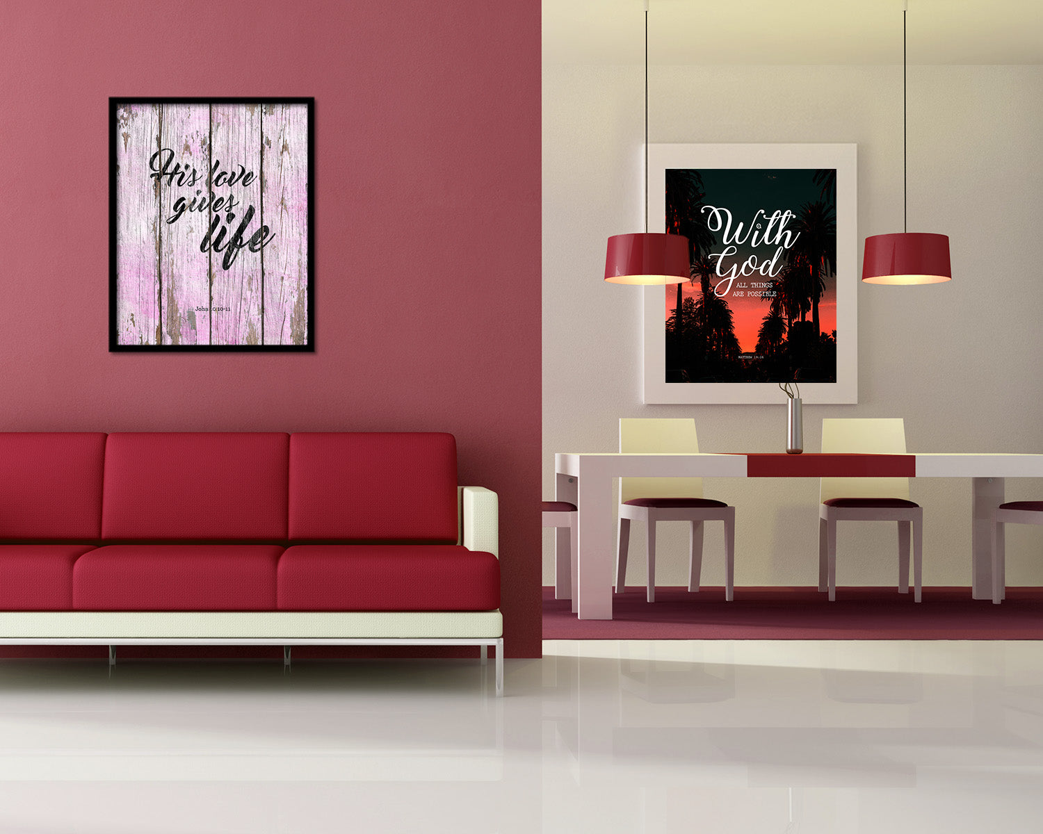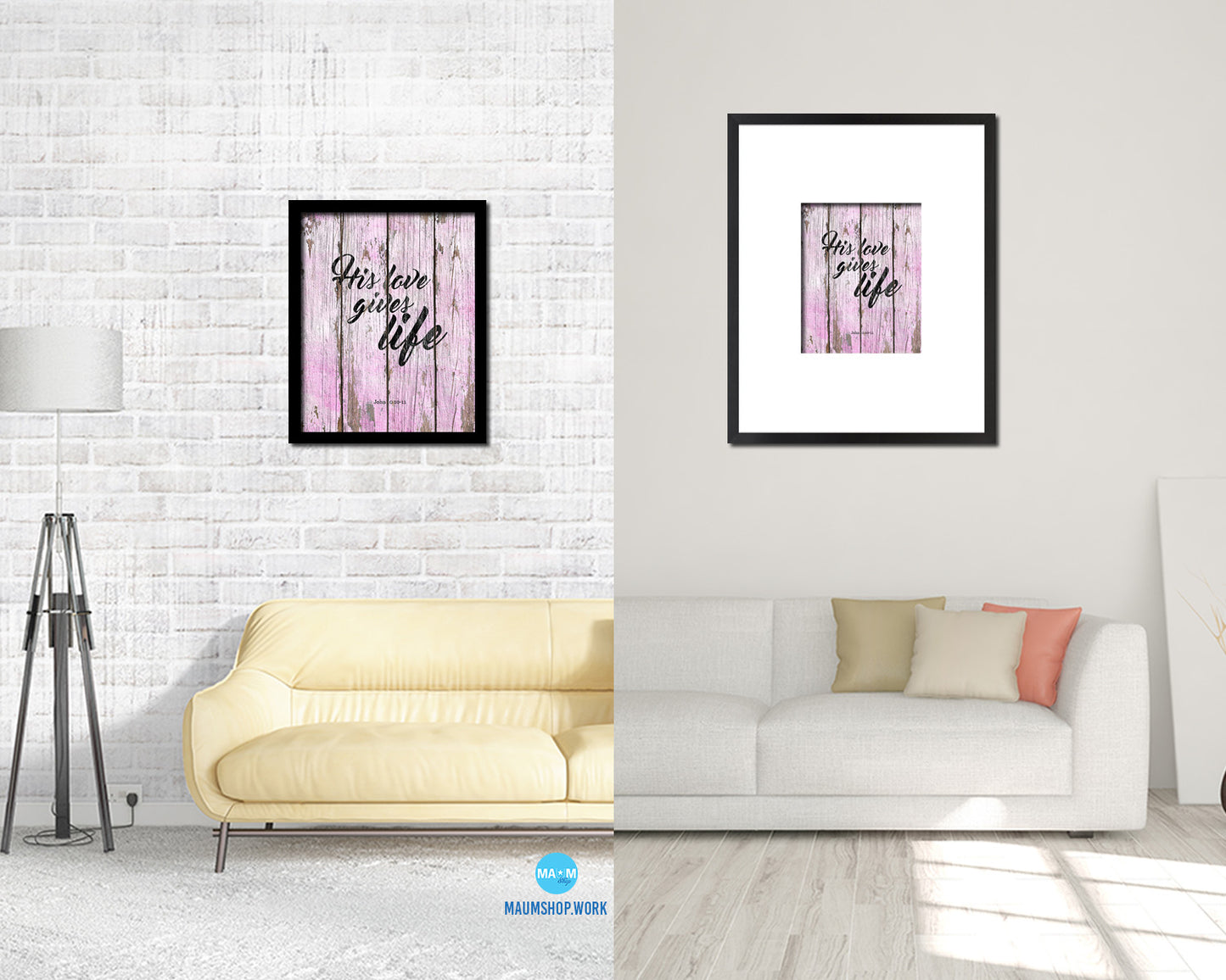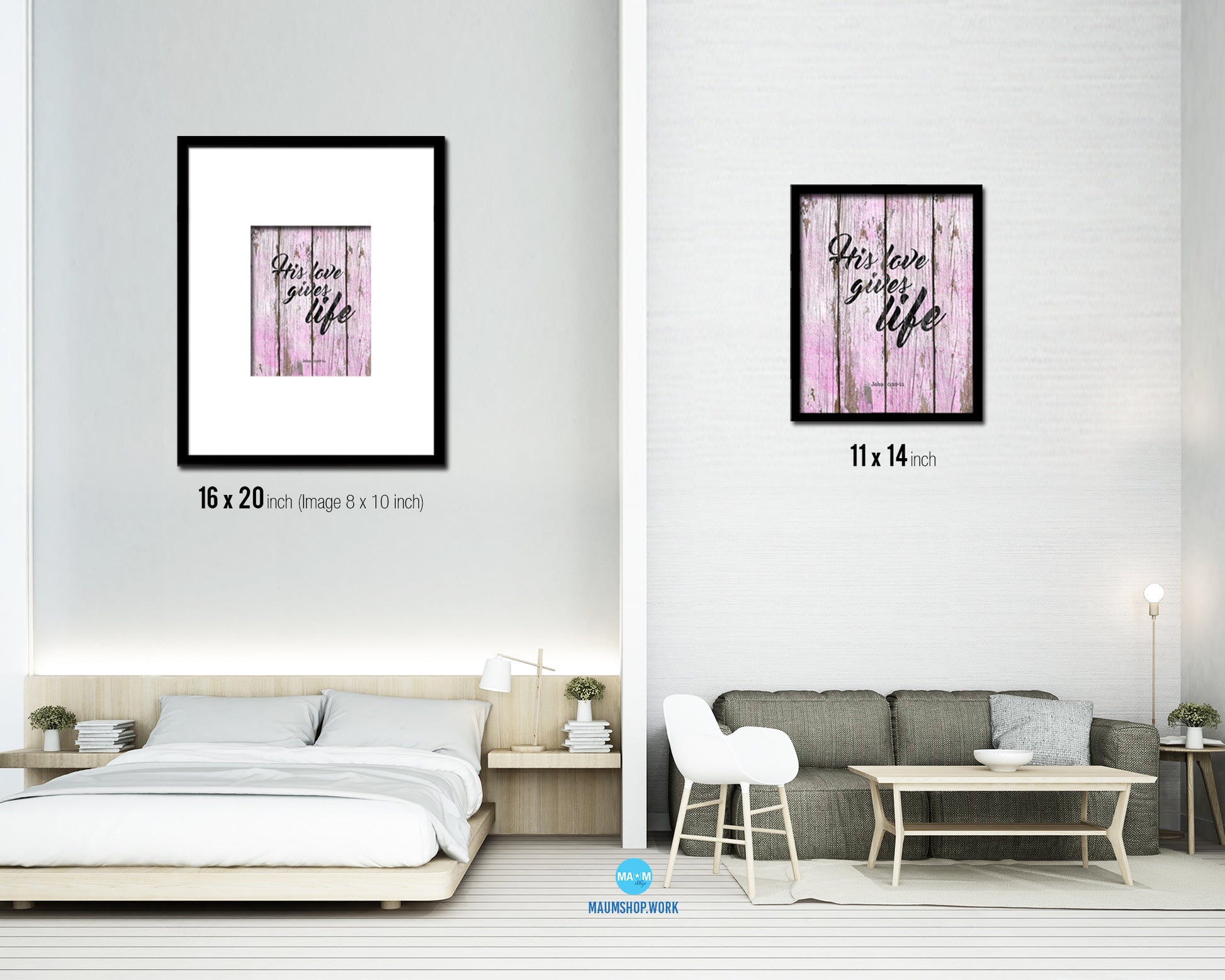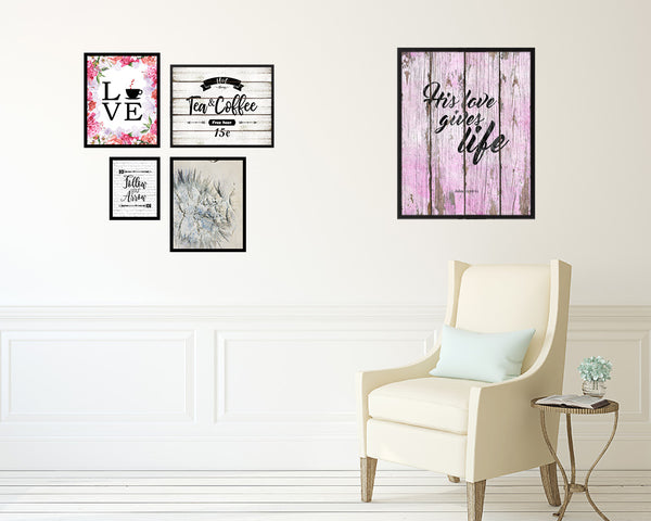 His love gives life, John 10:10-11 Quote Wood Framed Print Home Decor Wall Art Gifts