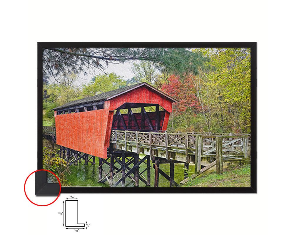 Historic Shaeffer Campbell Covered Bridge St Clairsville Ohio Landscape Painting Print Art Frame
