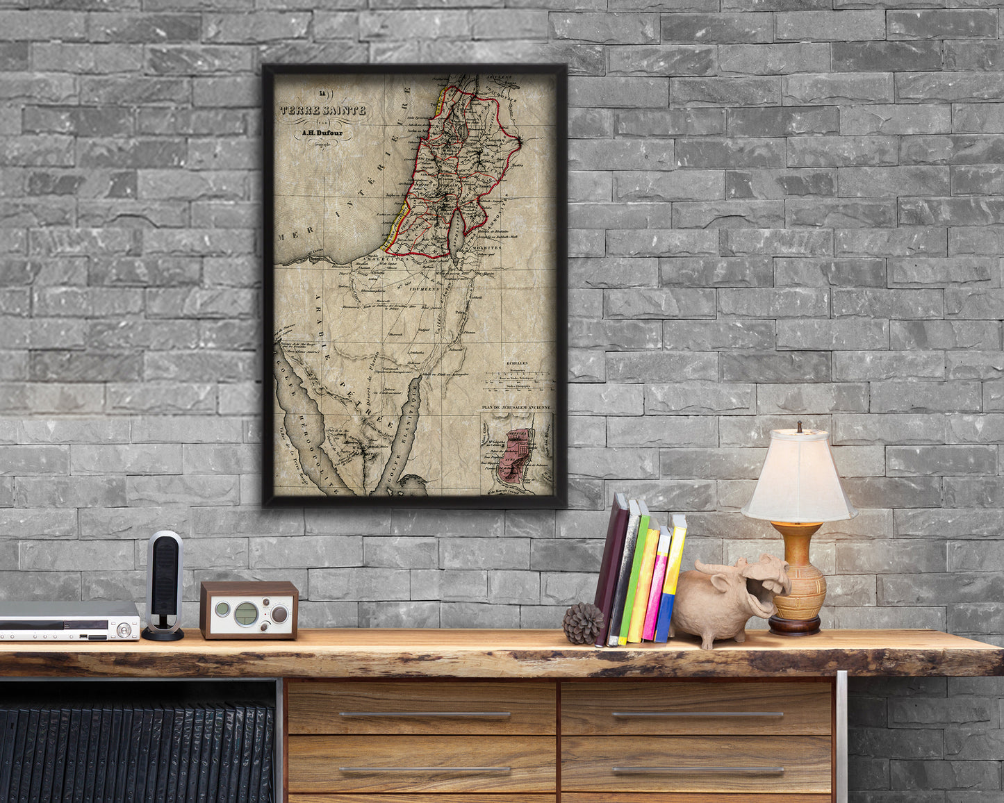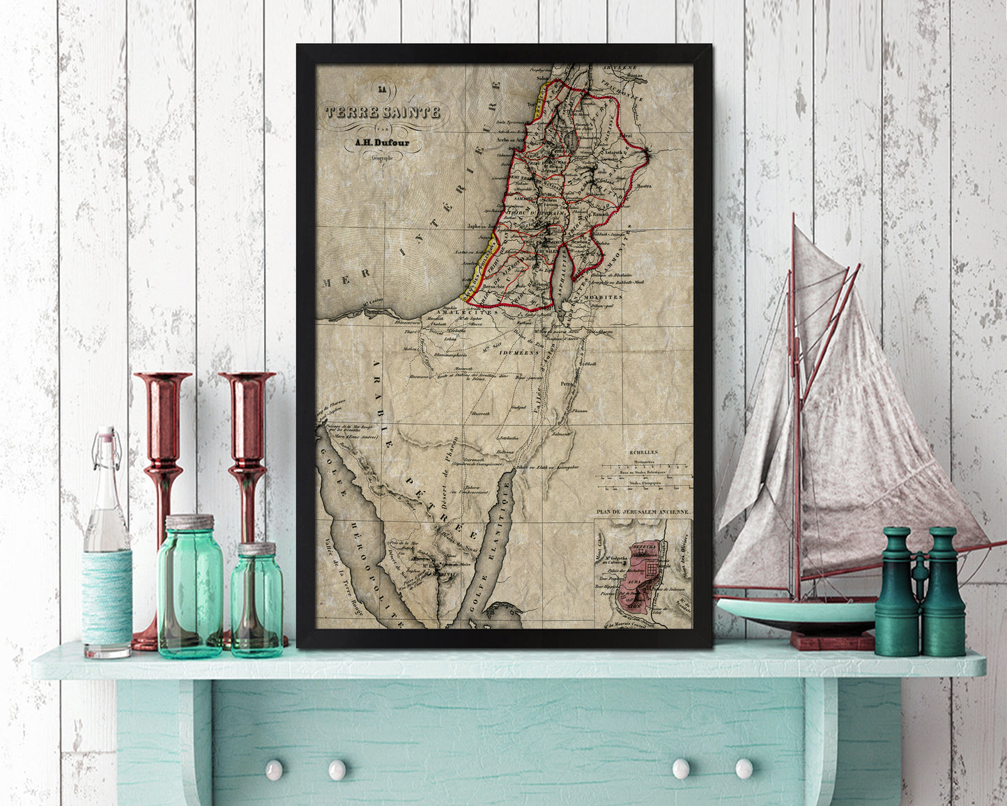 Holy Land Palestine Israel Old Map Wood Framed Print Art Wall Decor Gifts