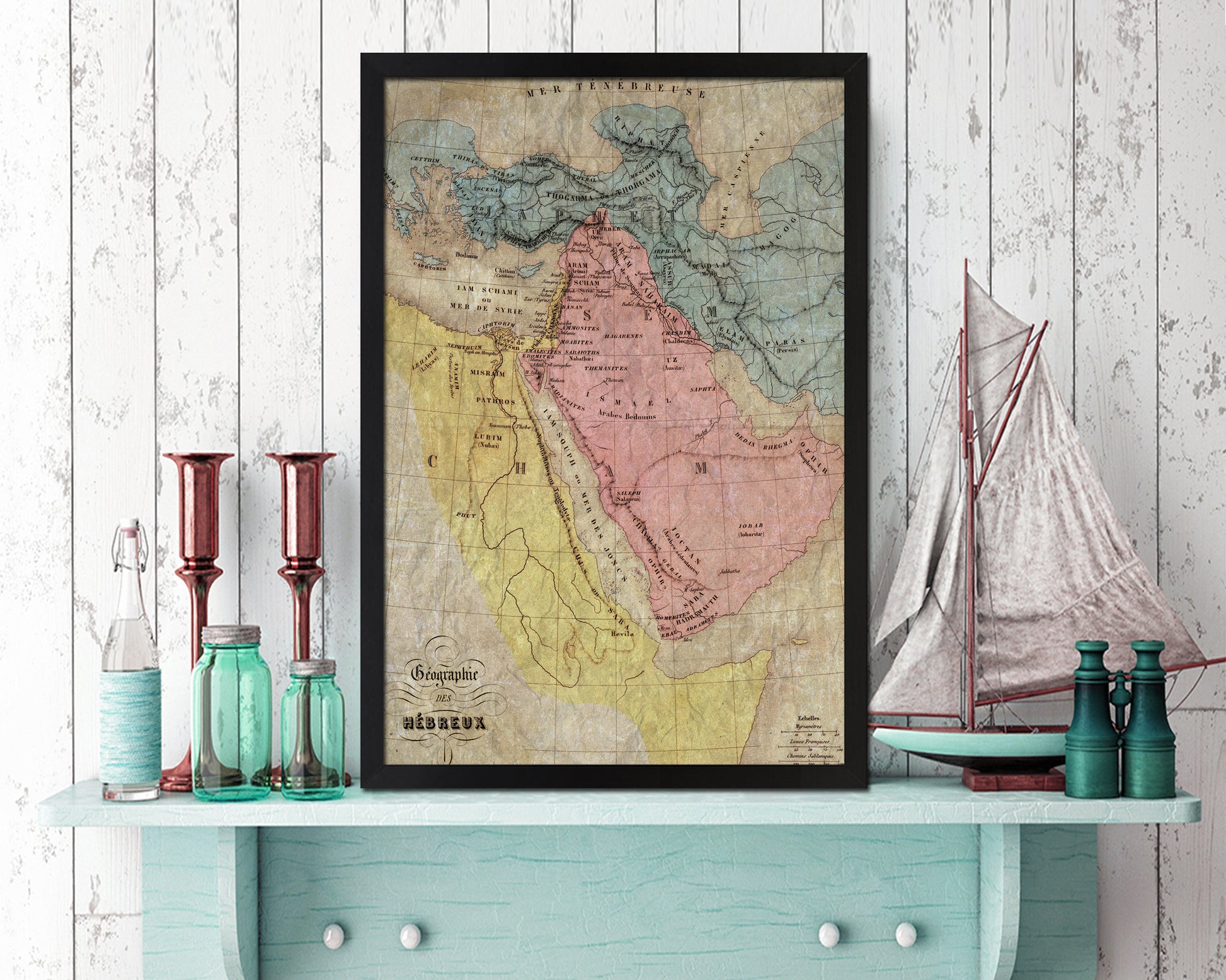 Holy Land Romans David Solomon Israel Palestine Historical Map Wood Framed Print Art Wall Decor Gifts