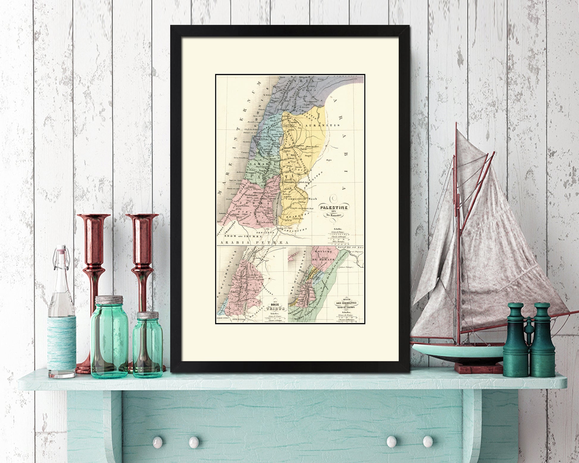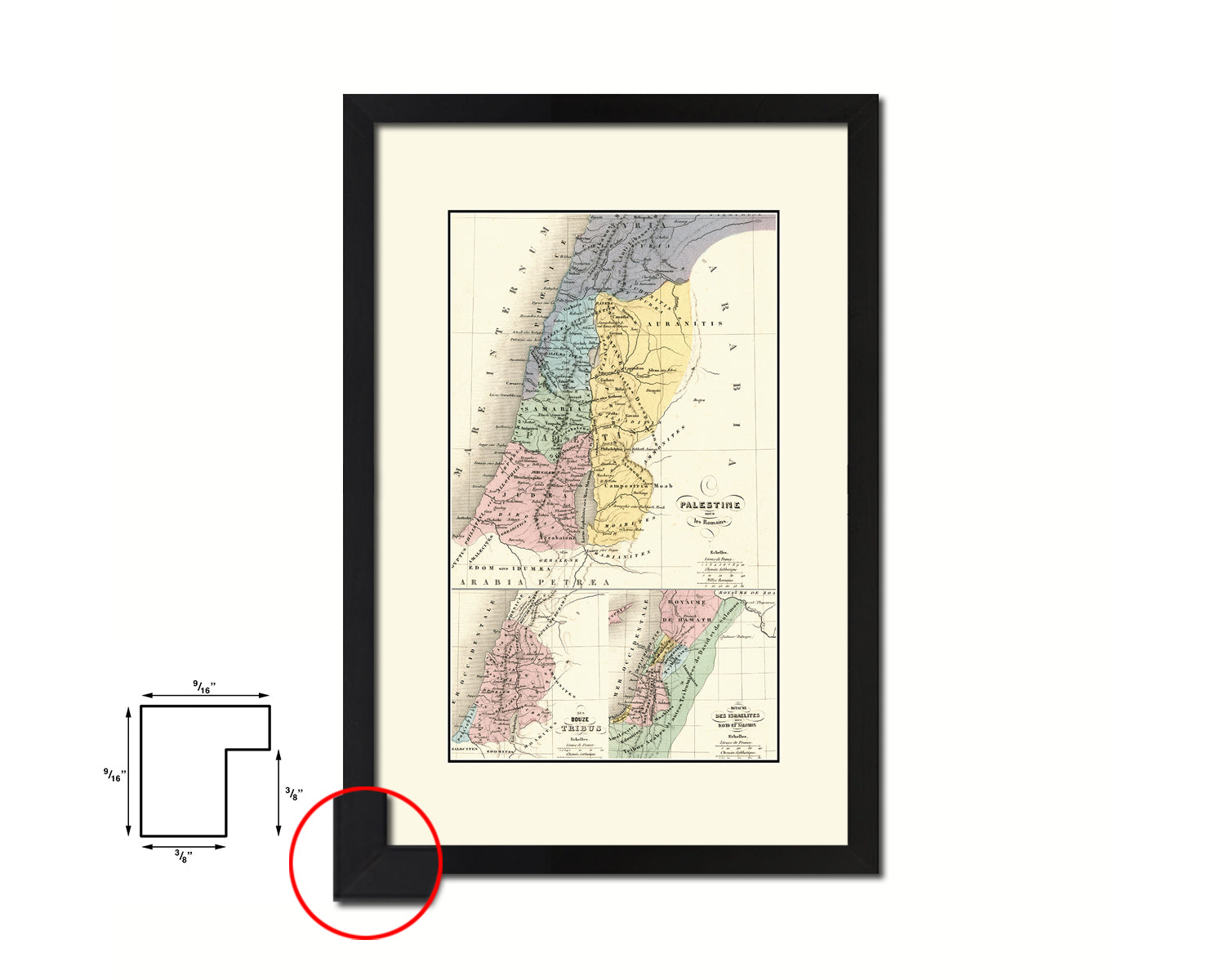 Holy Land Romans David Solomon Israel Palestine Old Map Wood Framed Print Art Wall Decor Gifts
