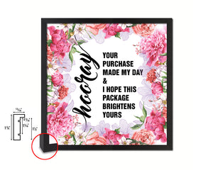 Hooray your purchase made my day&I hpoe this package brightens yours Quote Framed Print Gifts