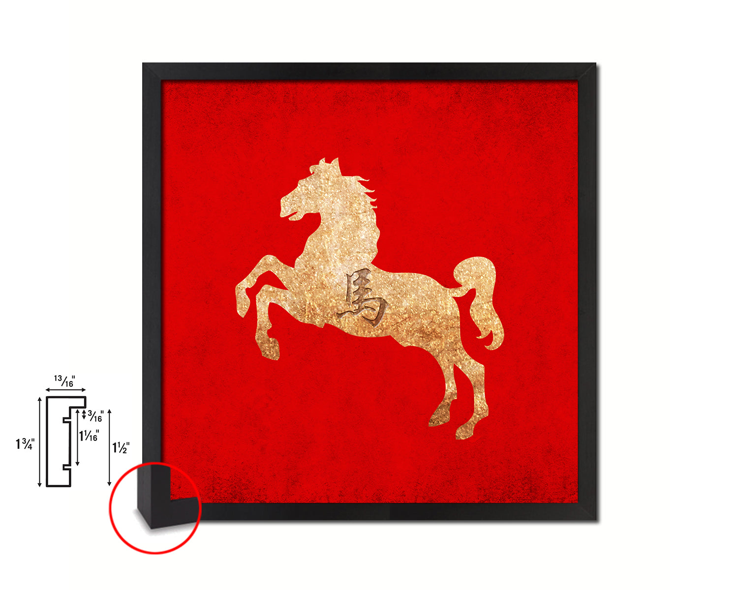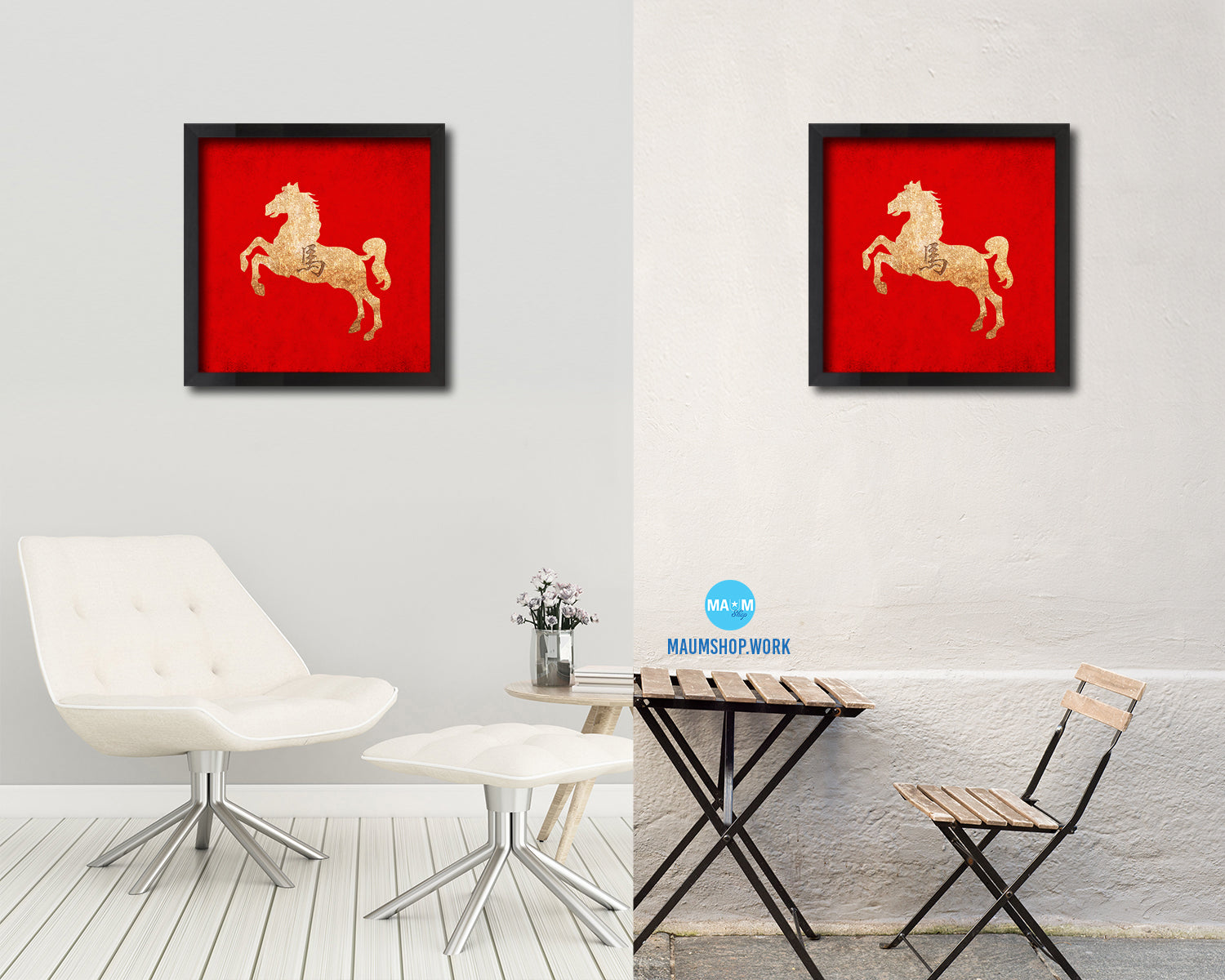 Horse Chinese Zodiac Character Wood Framed Print Wall Art Decor Gifts, Red