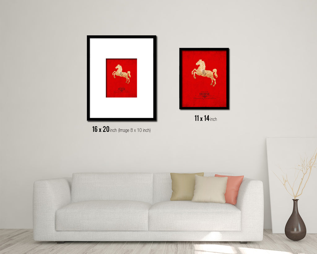 Horse Chinese Zodiac Character Black Framed Art Paper Print Wall Art Decor Gifts, Red