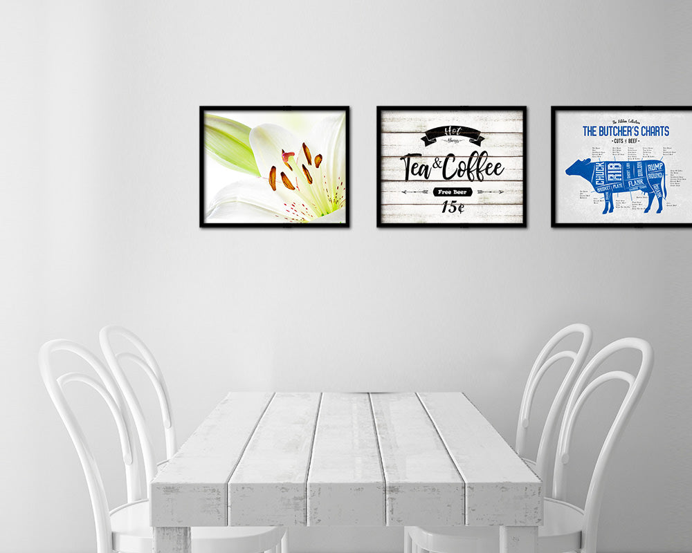 Hot Tea & Coffee Vintage Sign Fine Art Paper Prints Wood Frame Wall Art Decor Gifts