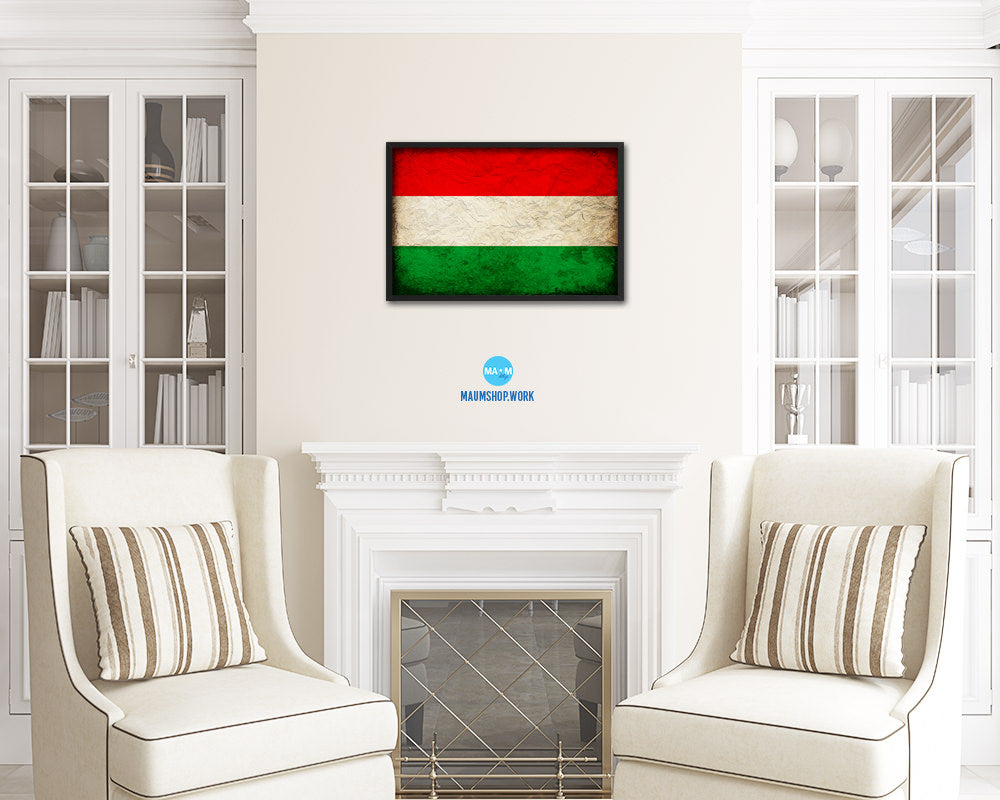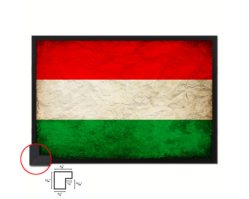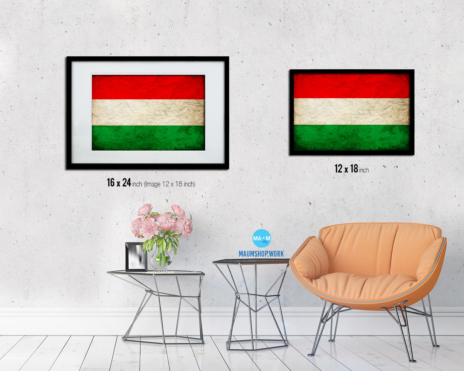 Hungary Country Vintage Flag Wood Framed Print Wall Art Decor Gifts