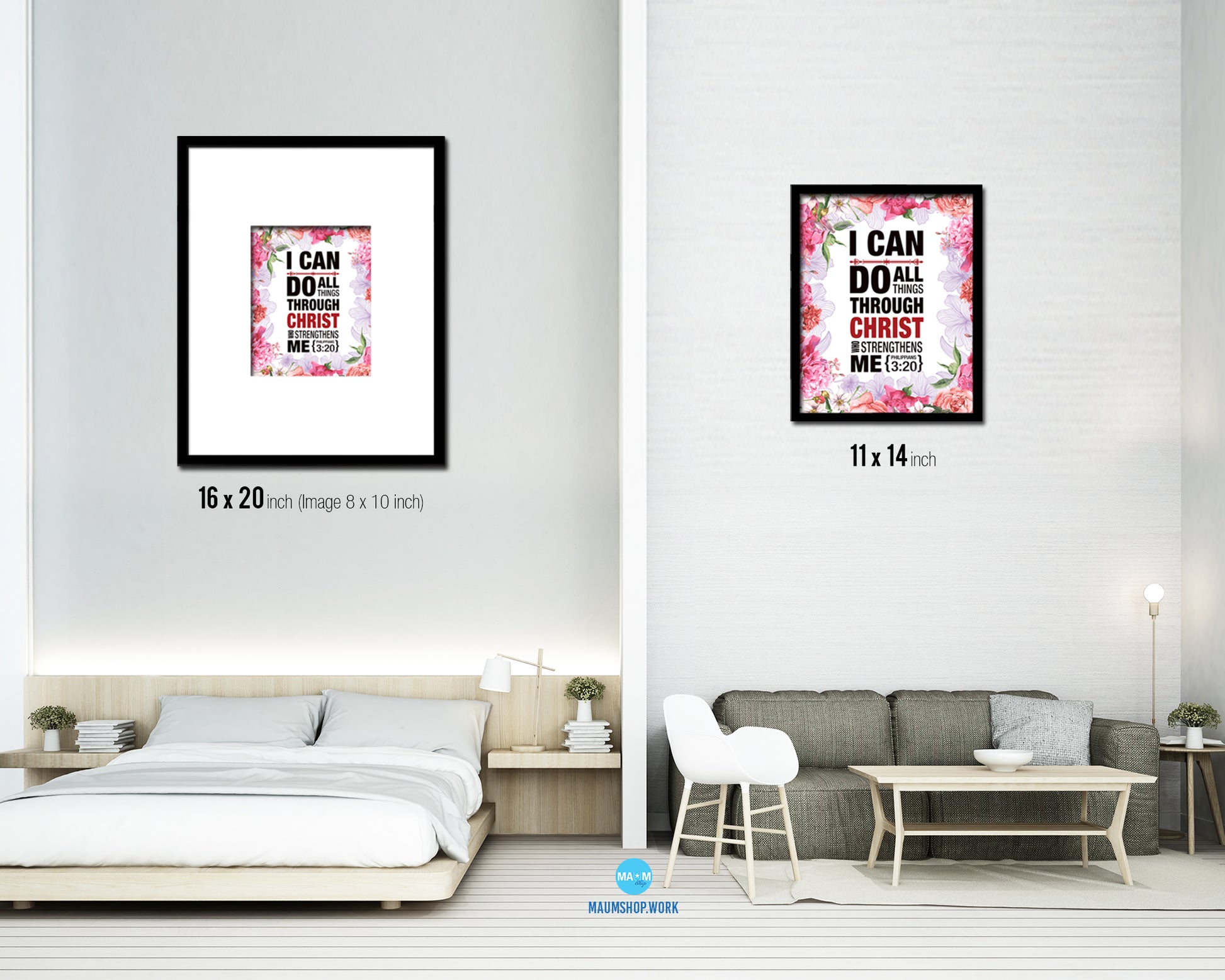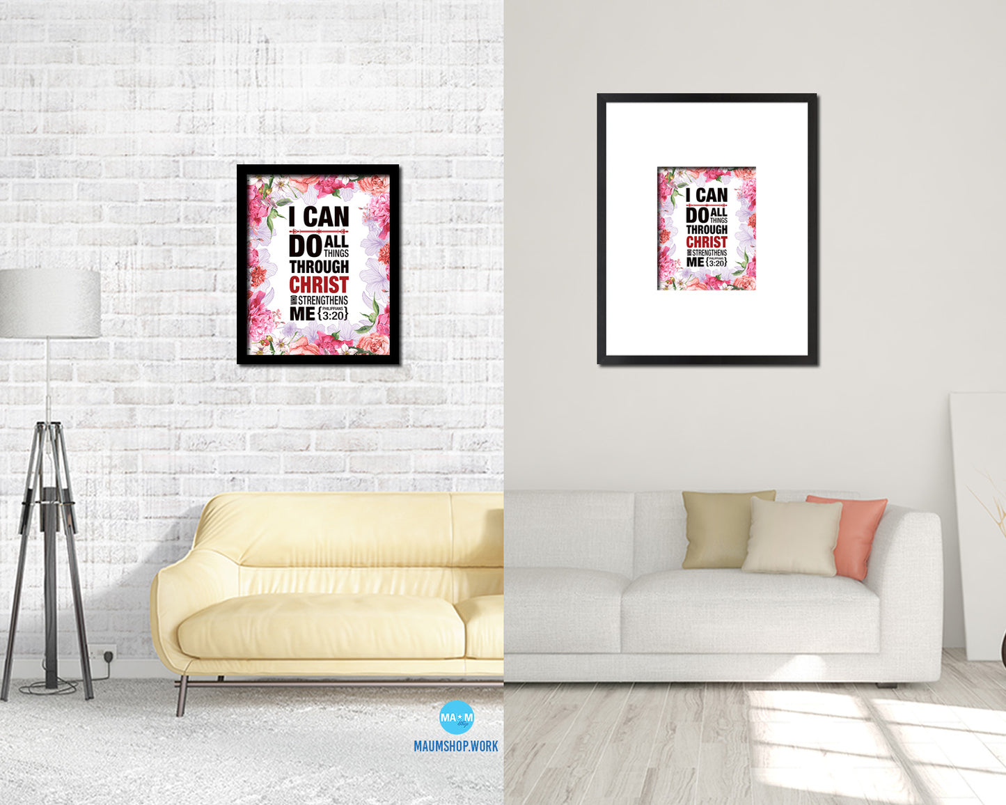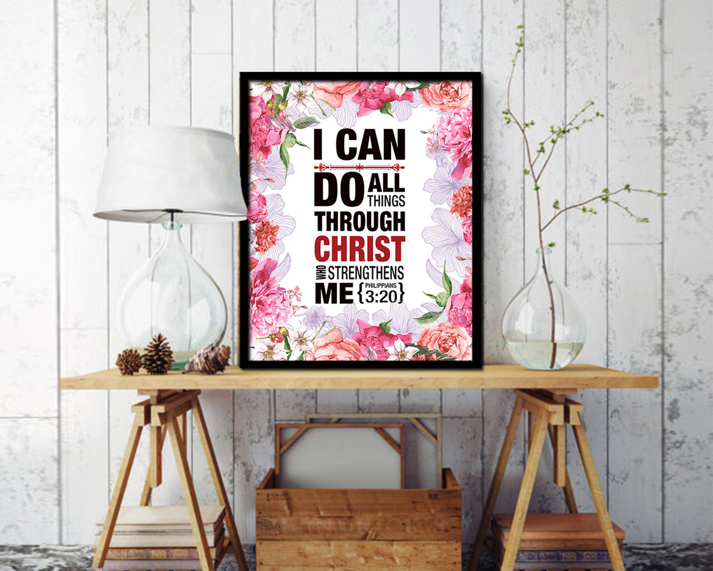 I can do all things through Christ who strengthens me, Philippians 3:20 Quote Framed Print Wall Art