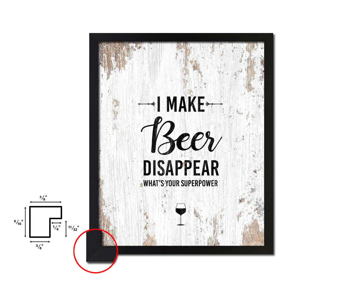 I make beer disappear what's your superpower Quote Wood Framed Print Wall Decor Art Gifts