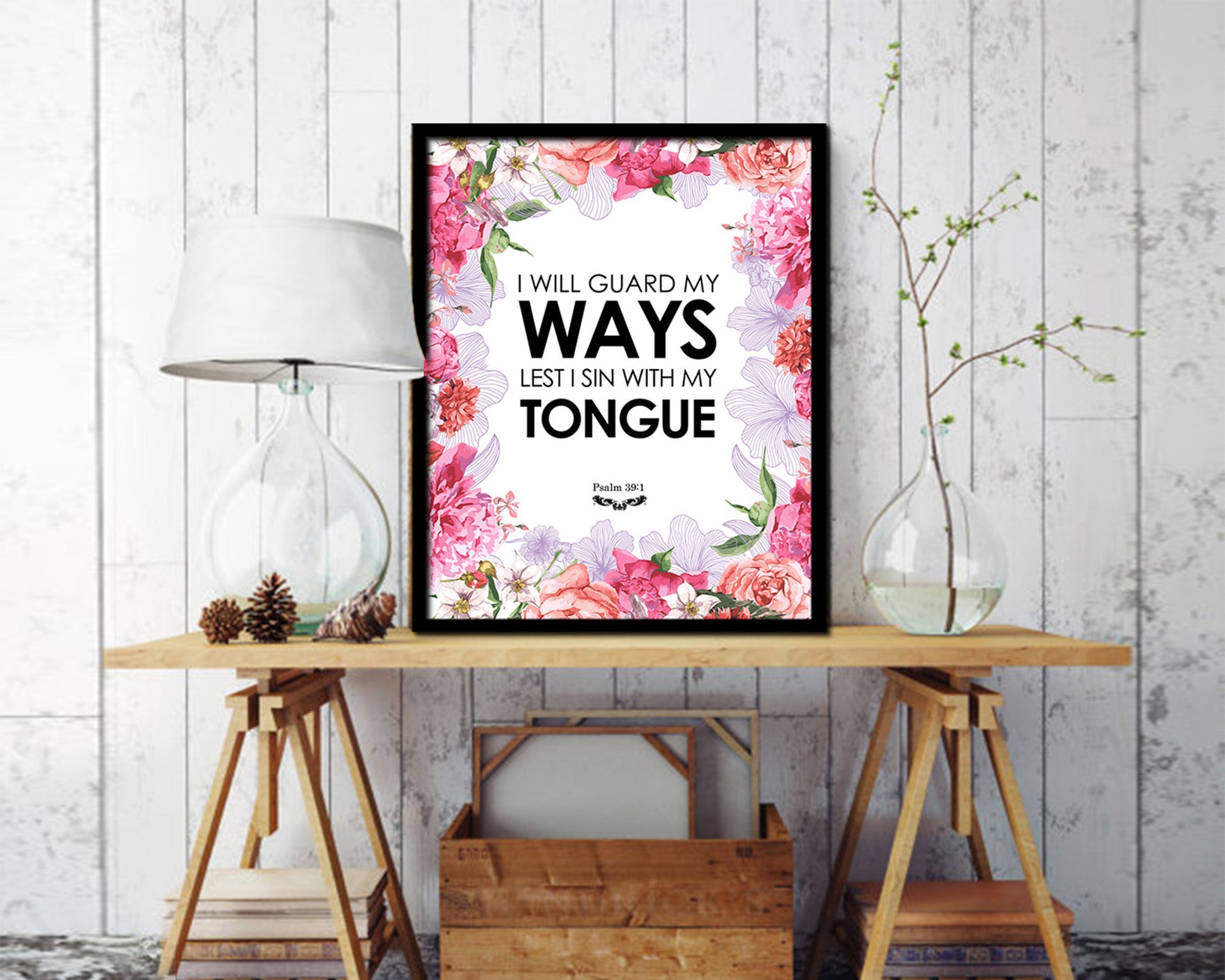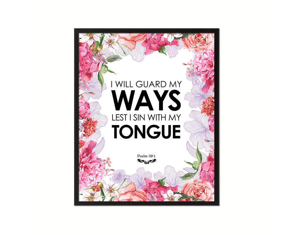 I will guard my ways lest I sin with my tongue, Psalm 39:1 Quote Framed Print Wall Decor Art Gifts