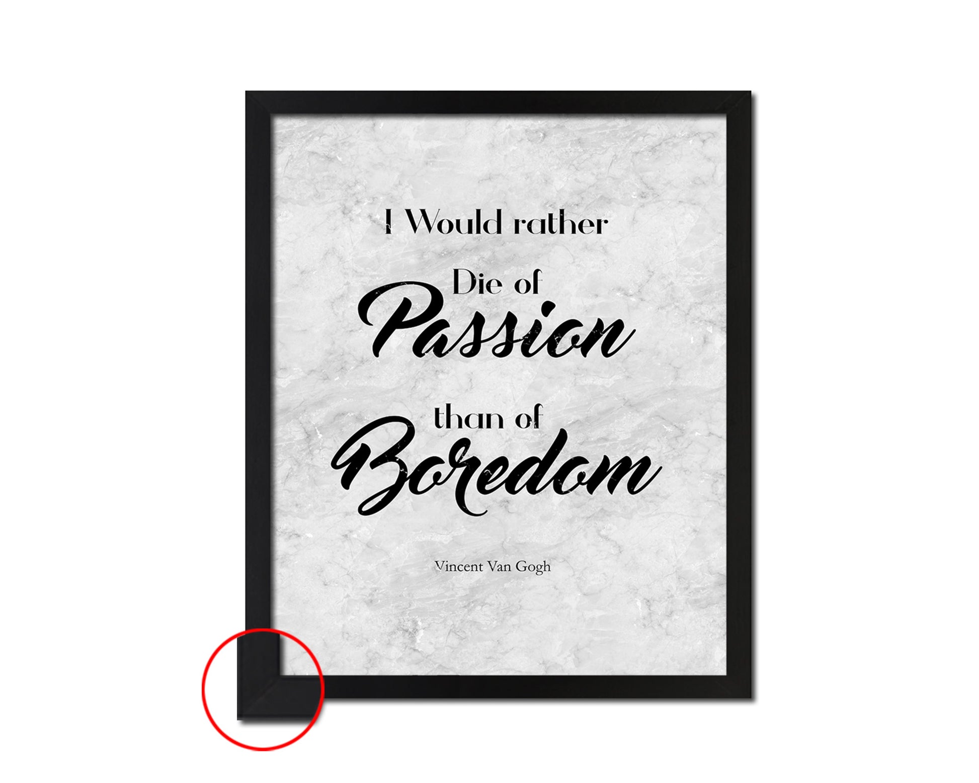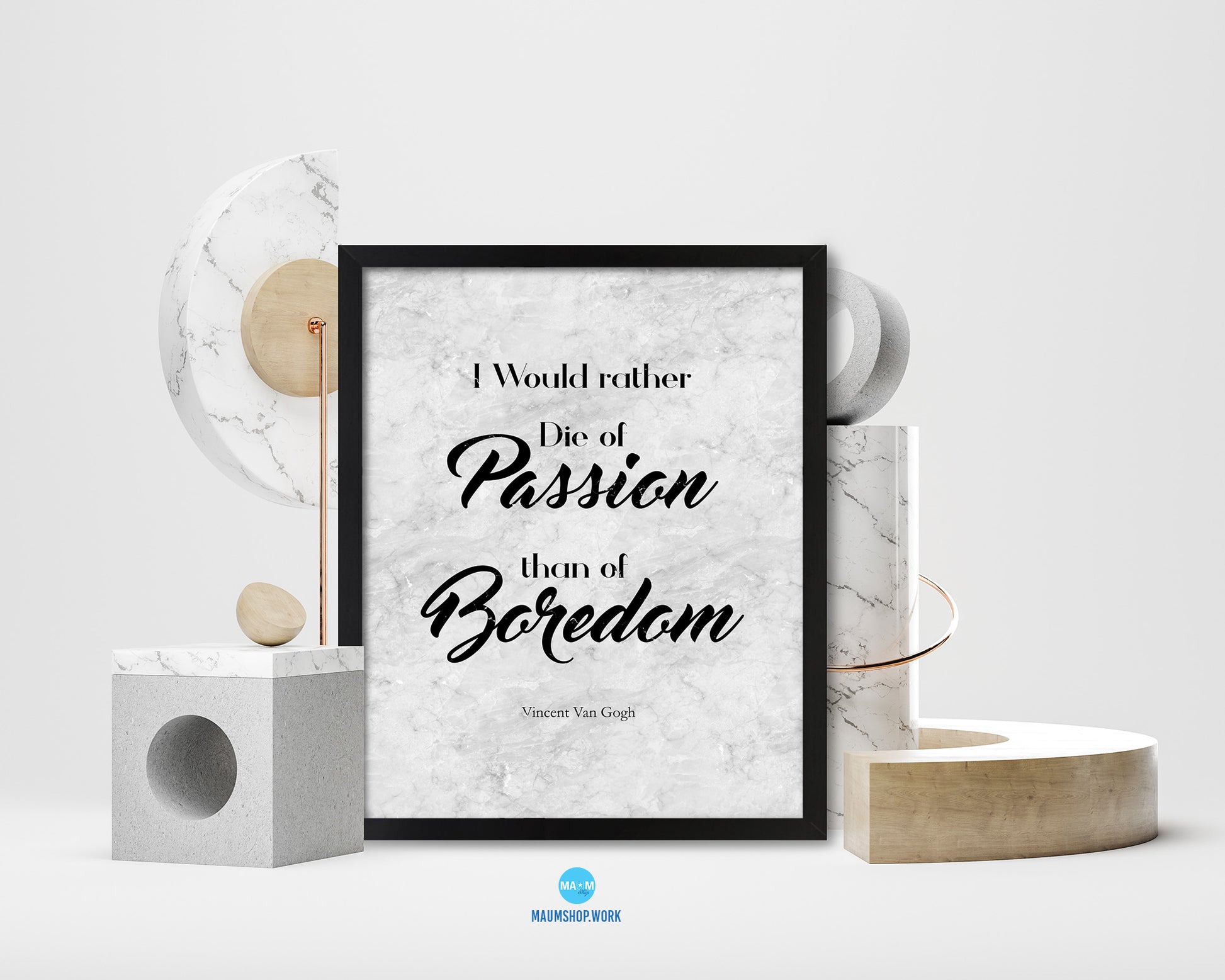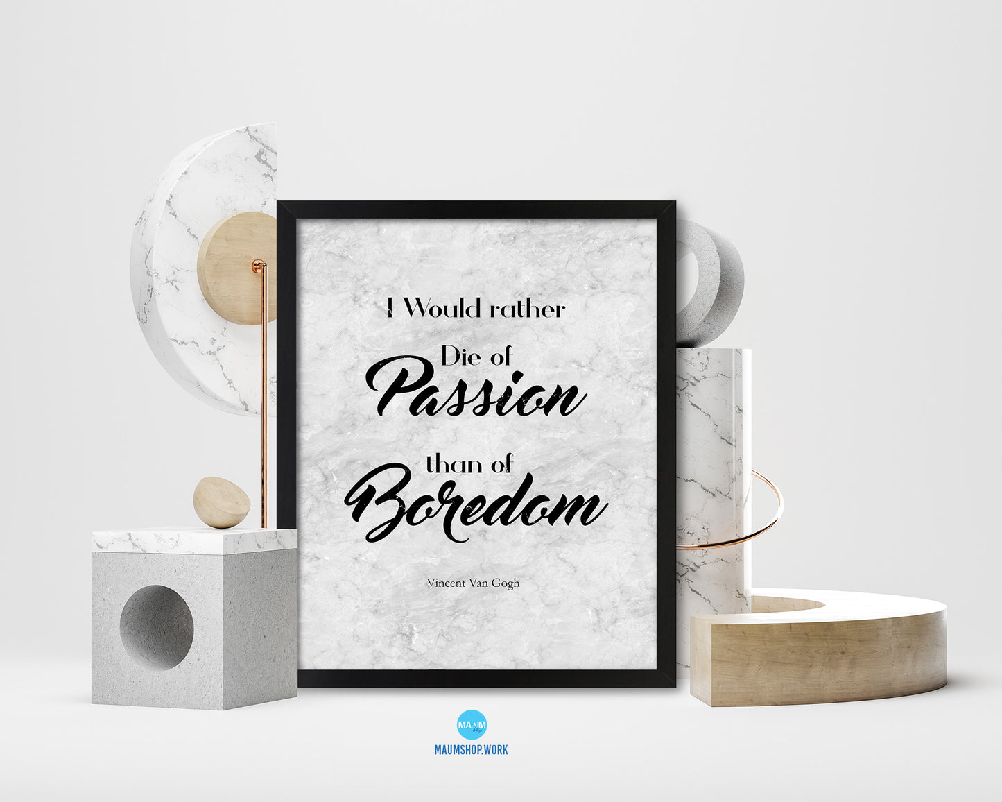 I would rather die of passion than of boredom Quote Framed Print Wall Art Decor Gifts