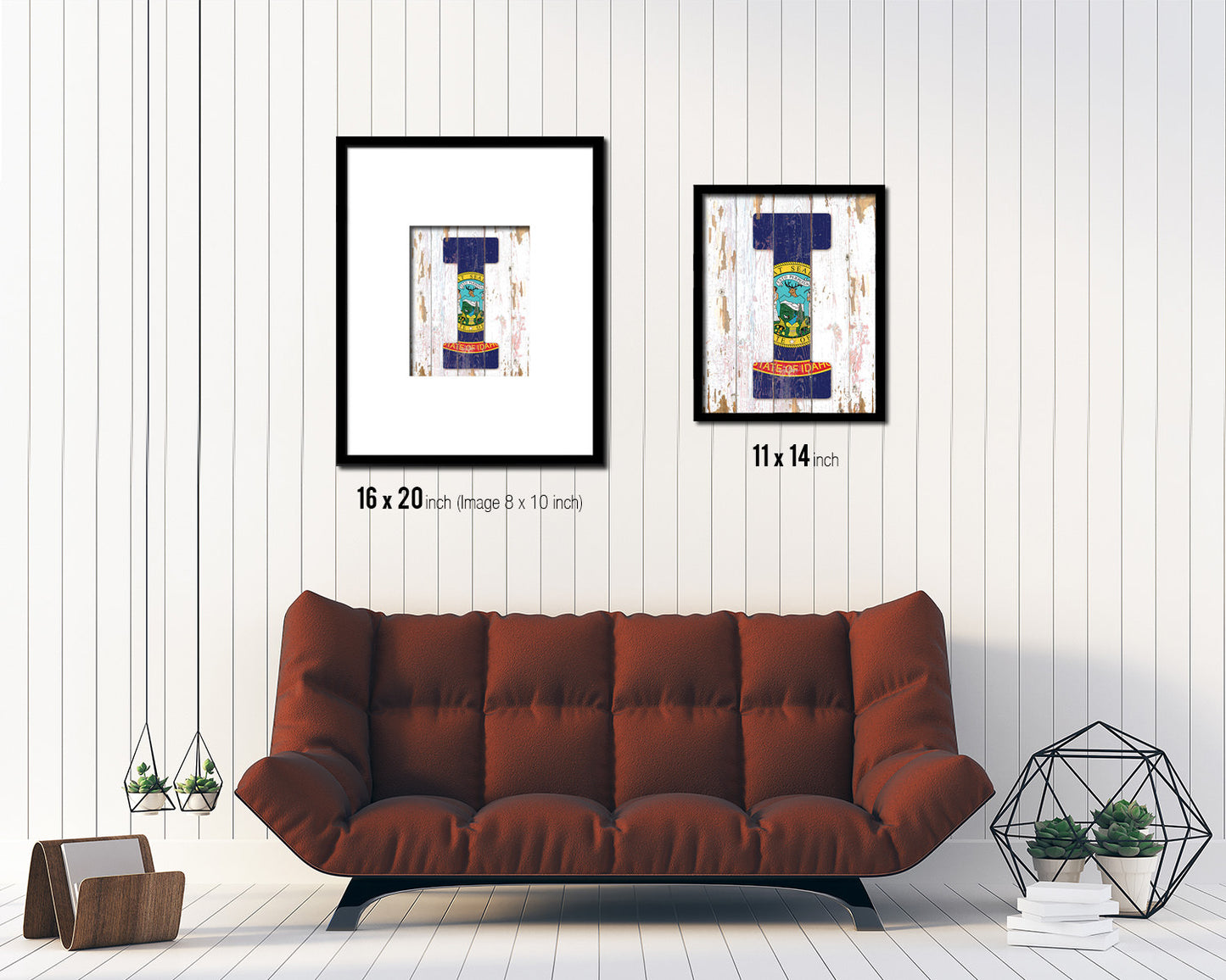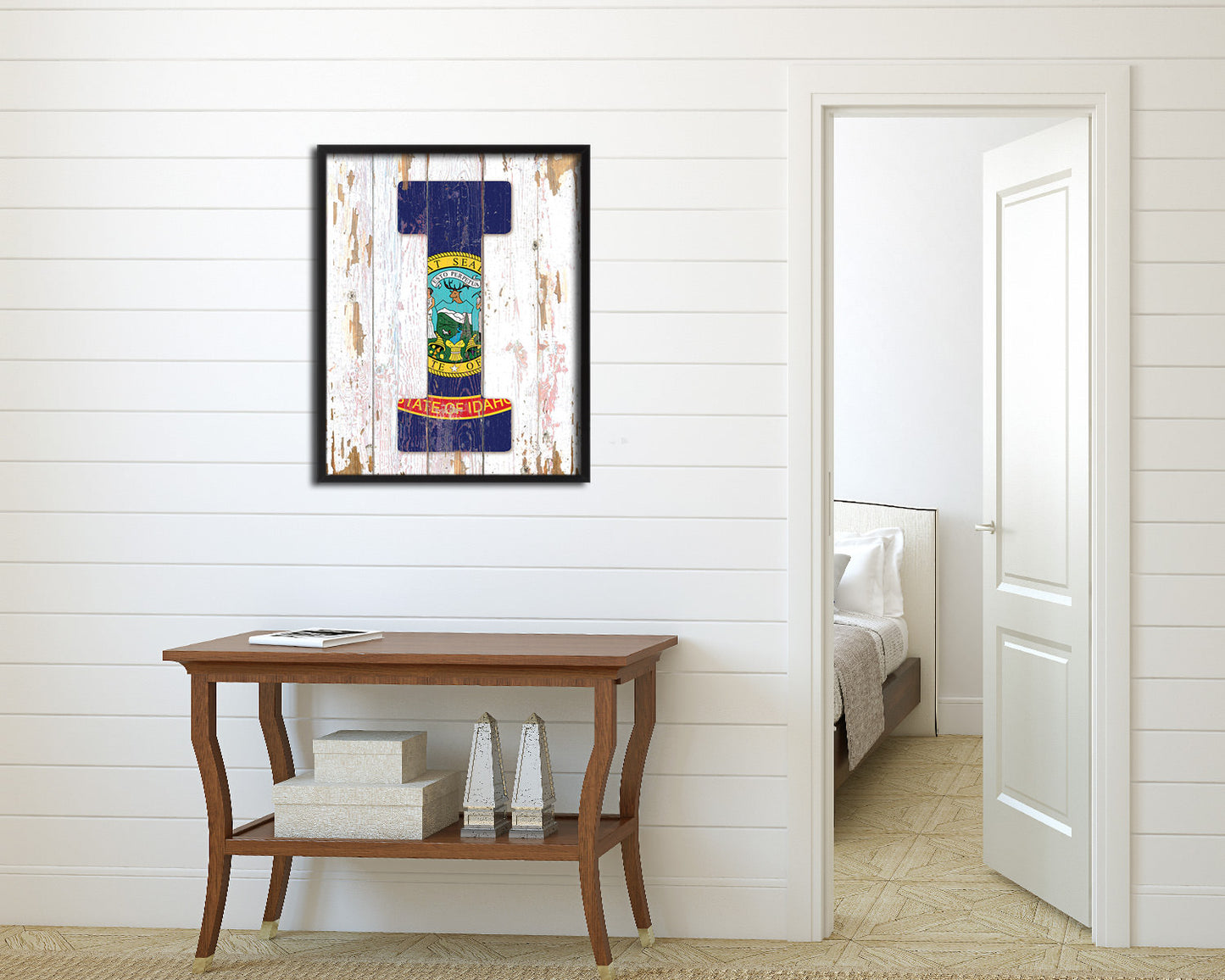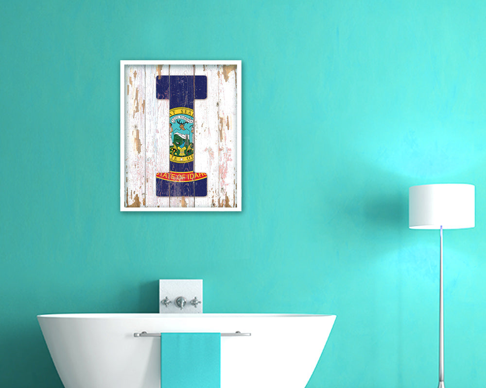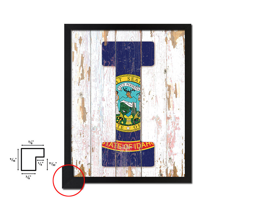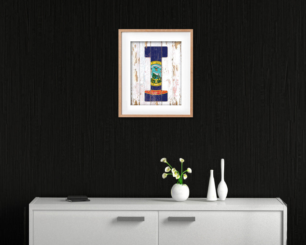 Idaho State Initial Flag Wood Framed Paper Print Decor Wall Art Gifts, Beach