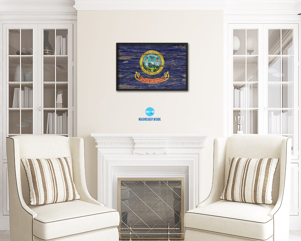 Idaho State Rustic Flag Wood Framed Paper Prints Wall Art Decor Gifts