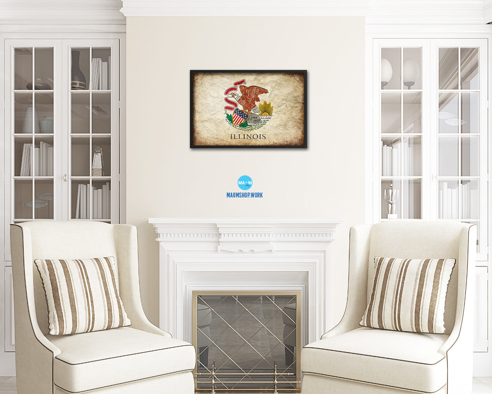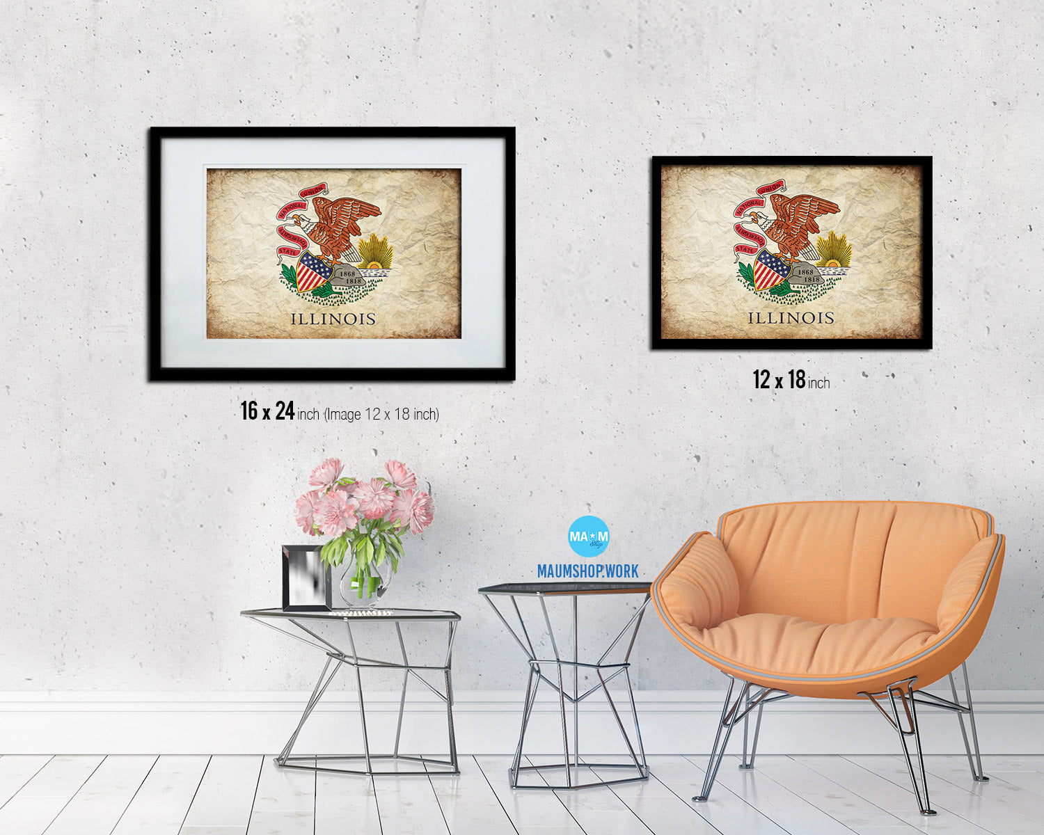 Illinois State Vintage Flag Wood Framed Paper Print Wall Art Decor Gifts
