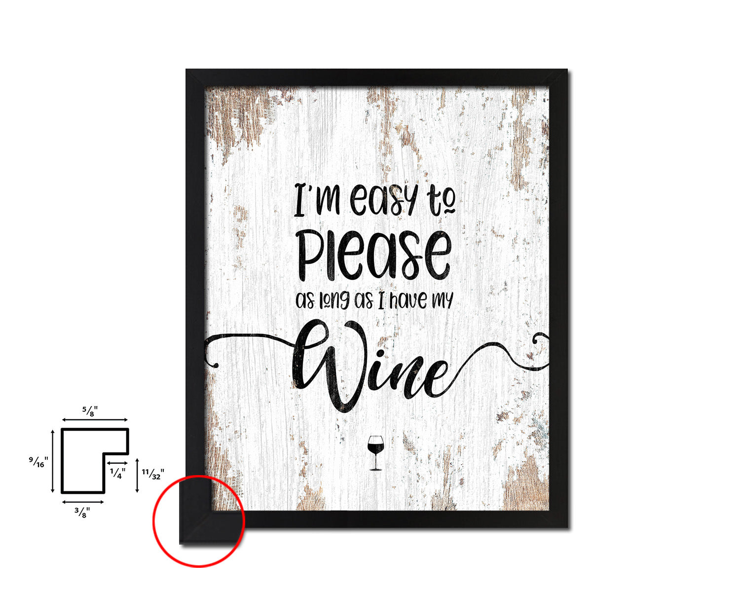 I'm easy to please as long as I have my wine Quote Wood Framed Print Wall Decor Art Gifts