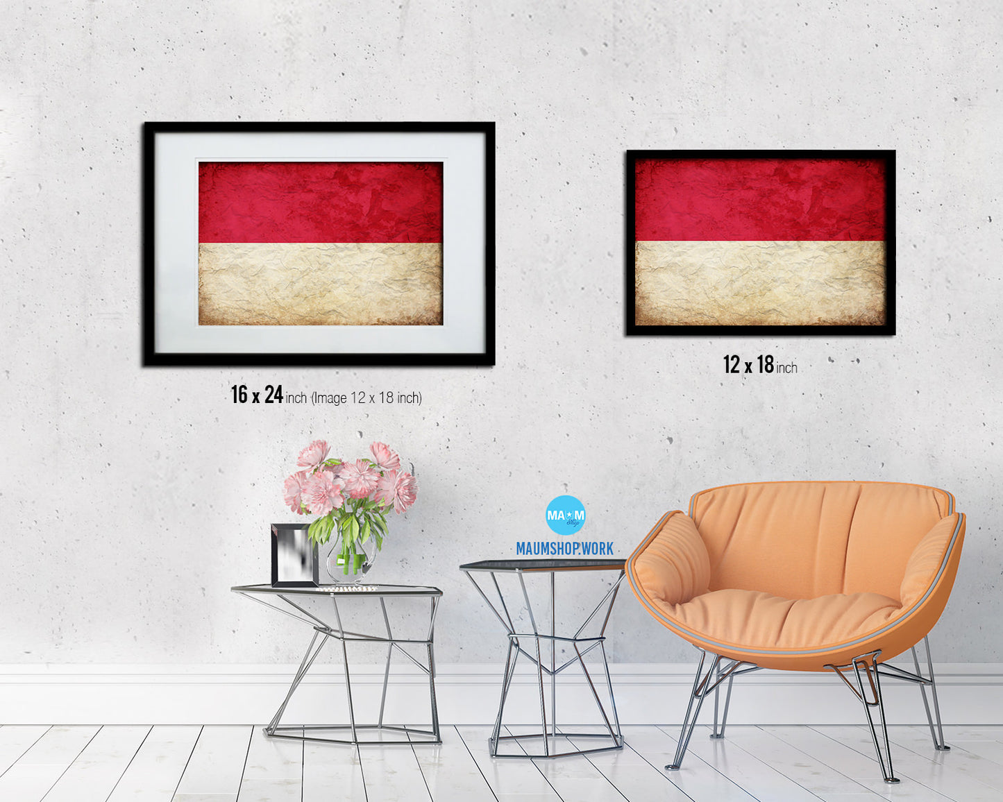 Indonesia Country Vintage Flag Wood Framed Print Wall Art Decor Gifts