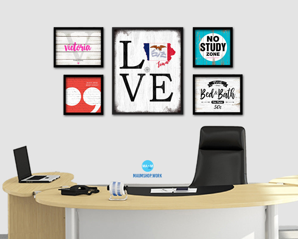 Iowa Shabby Chic Love Sign Wood Framed Paper Print Decor Wall Art Gifts