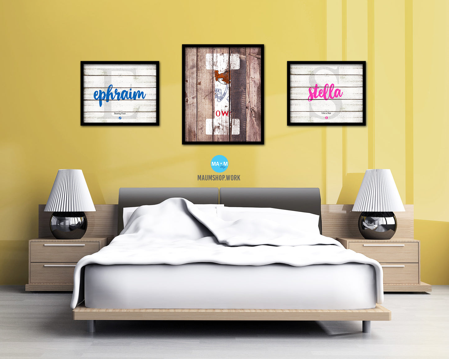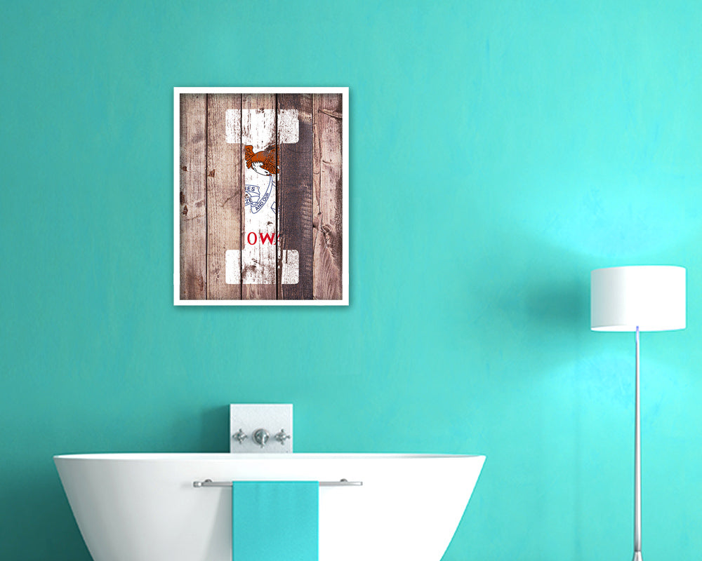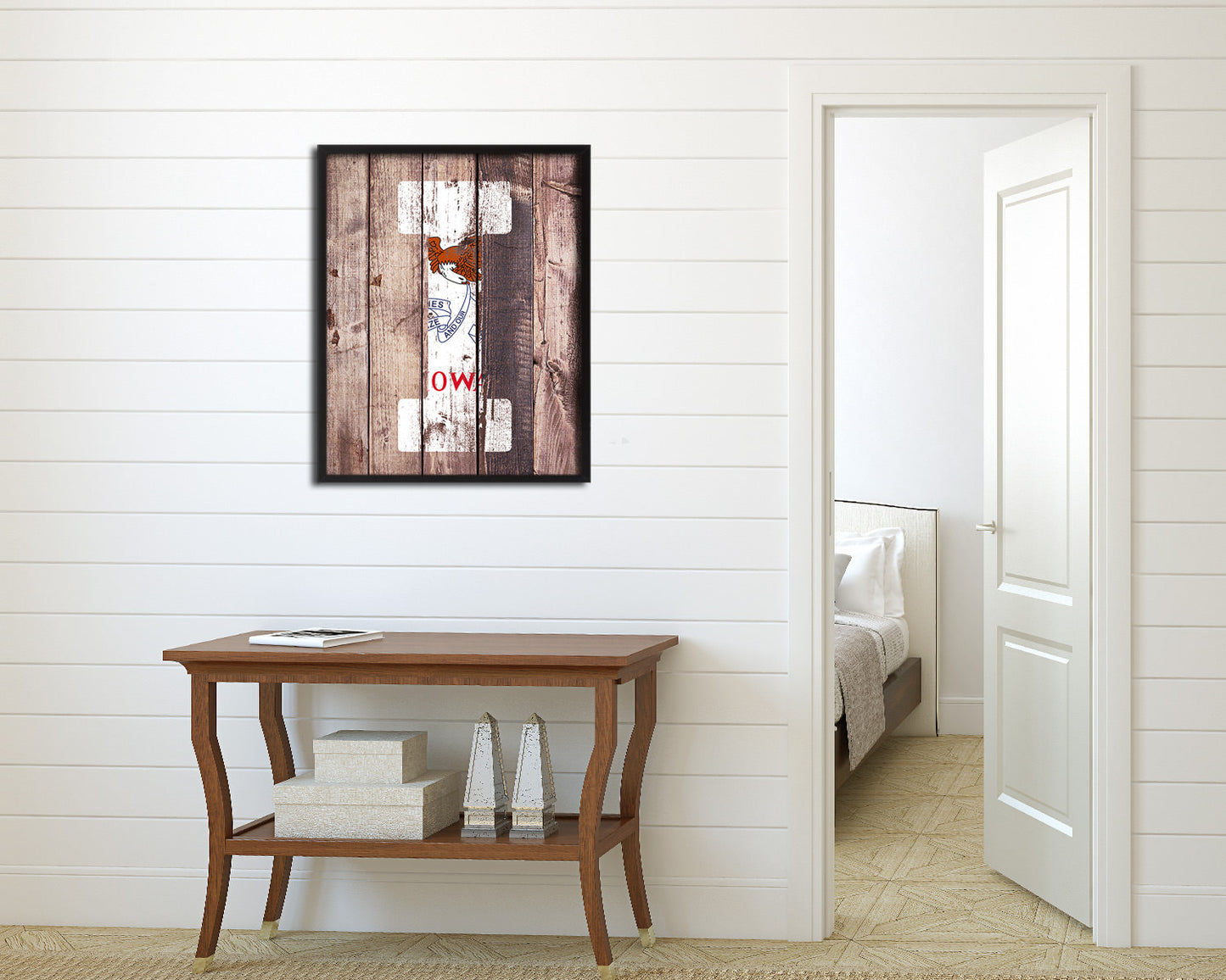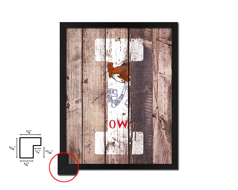Iowa State Initial Flag Wood Framed Paper Print Decor Wall Art Gifts, Wood