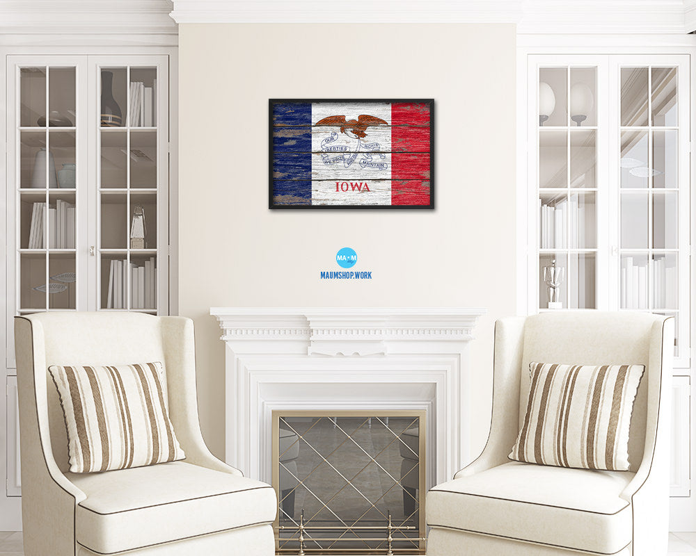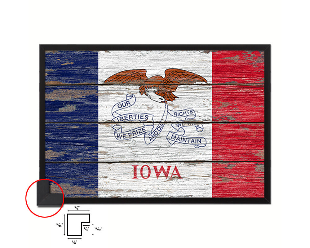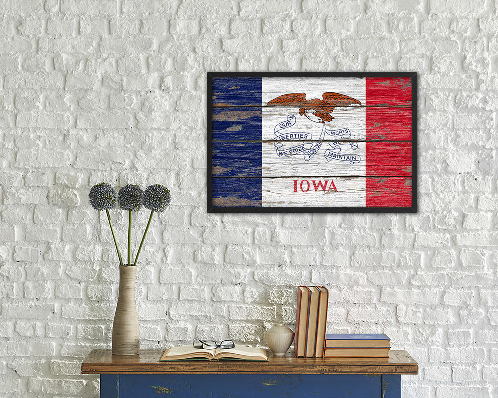 Iowa State Rustic Flag Wood Framed Paper Prints Wall Art Decor Gifts
