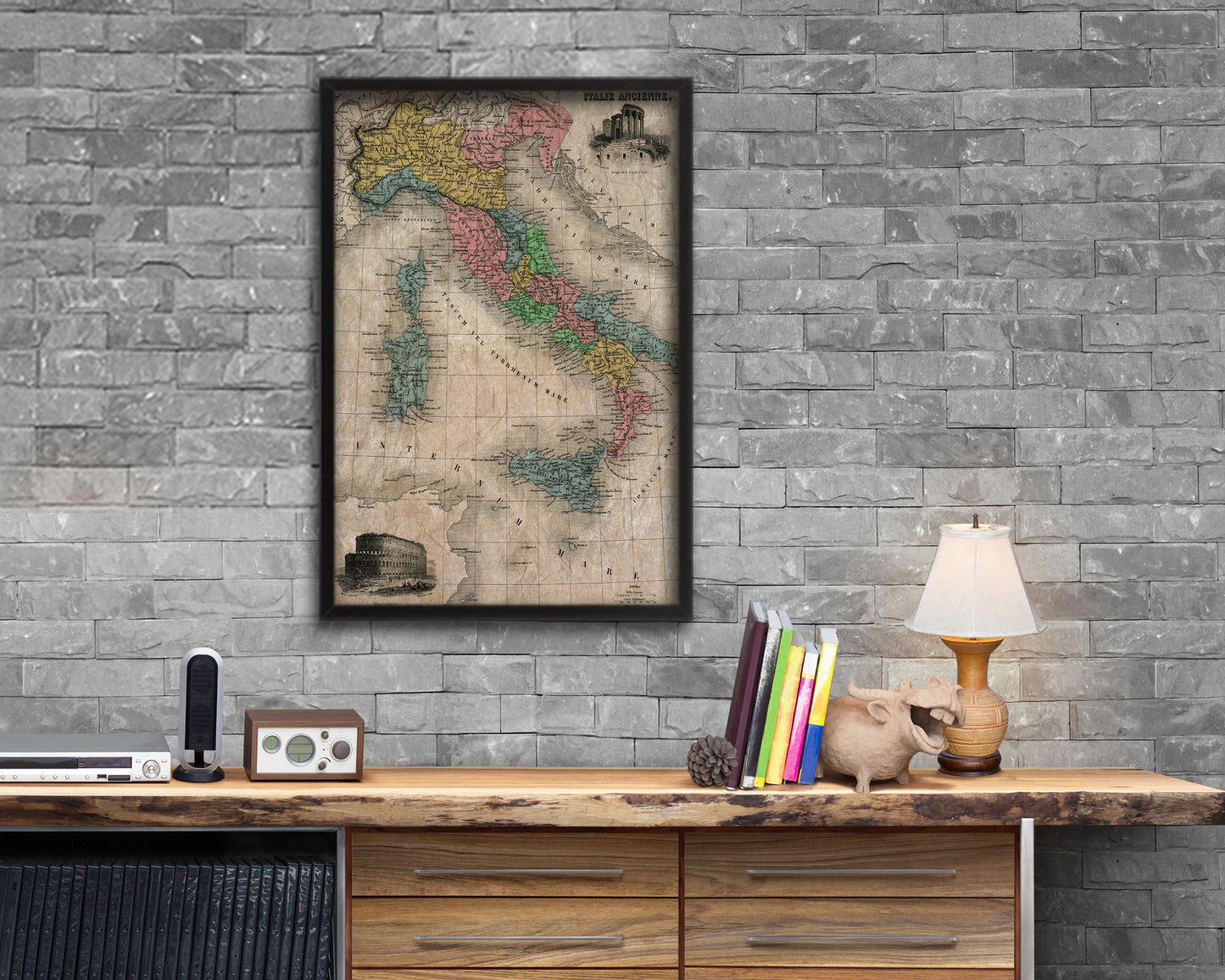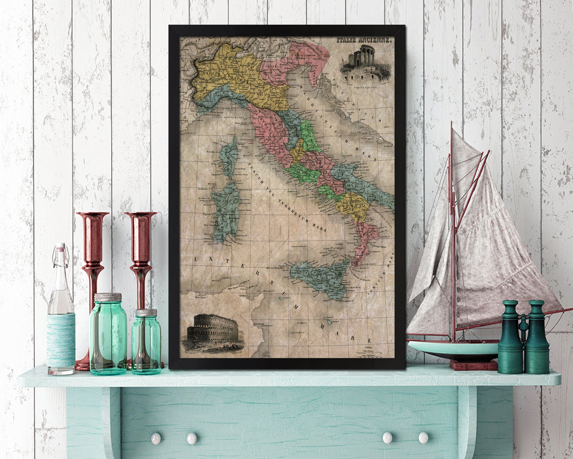 Italy Historical Map Wood Framed Print Art Wall Decor Gifts