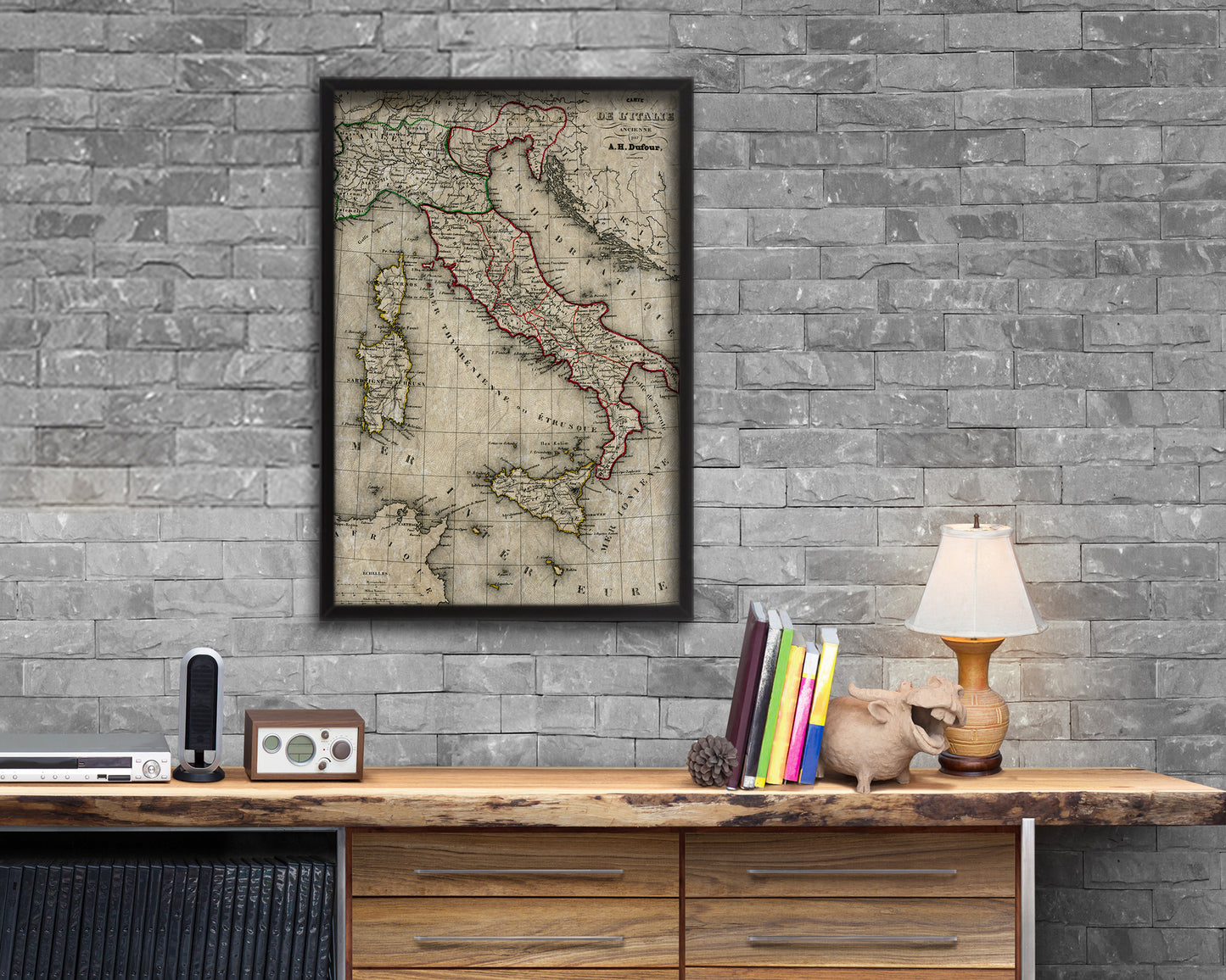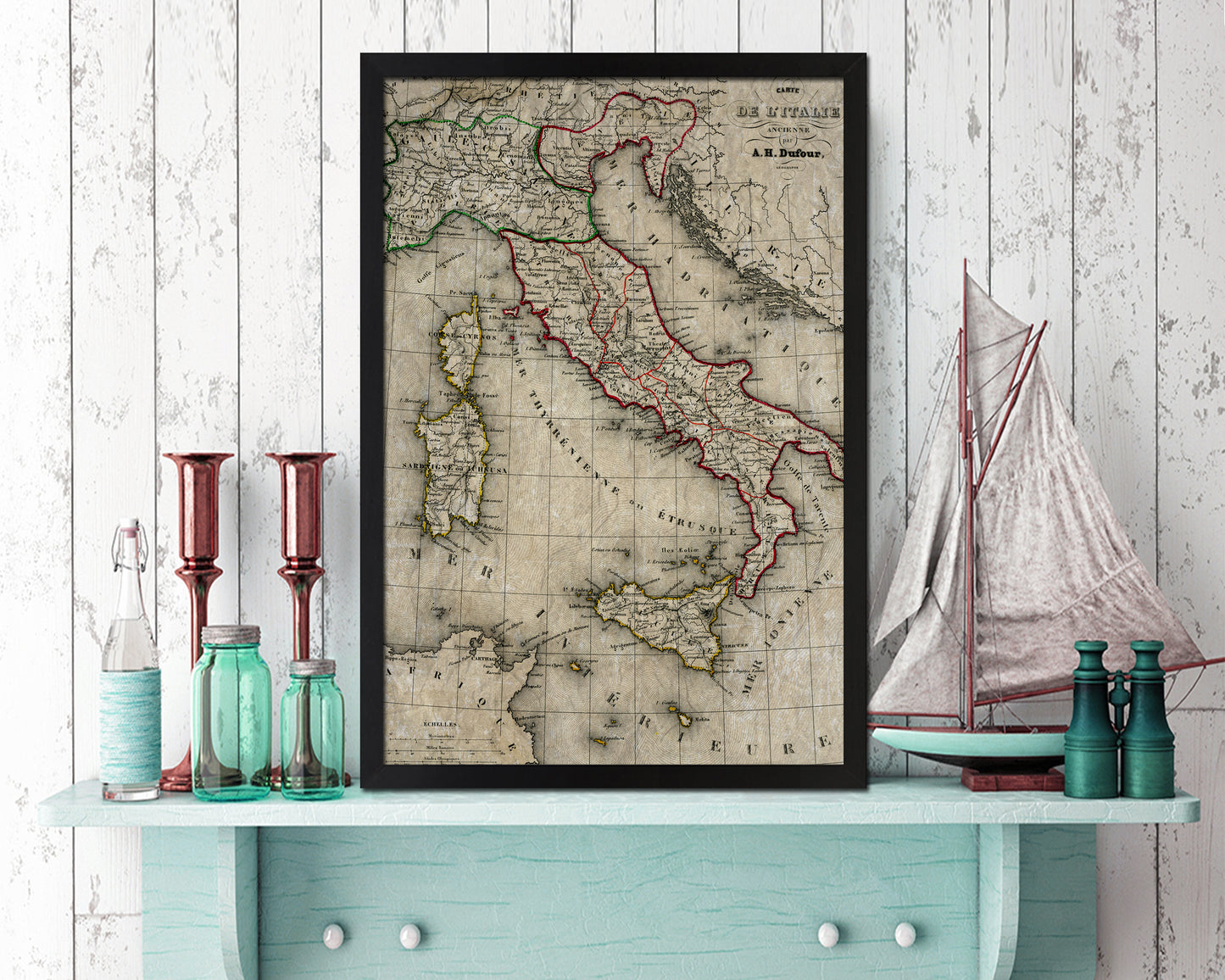 Italy Historical Map Wood Framed Print Art Wall Decor Gifts
