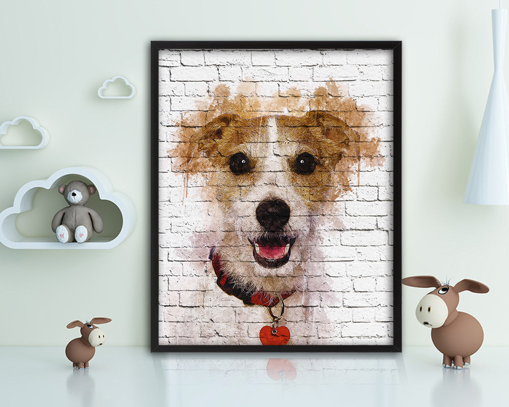 Jack Russell Terrier Dog Puppy Portrait Framed Print Pet Watercolor Wall Decor Art Gifts