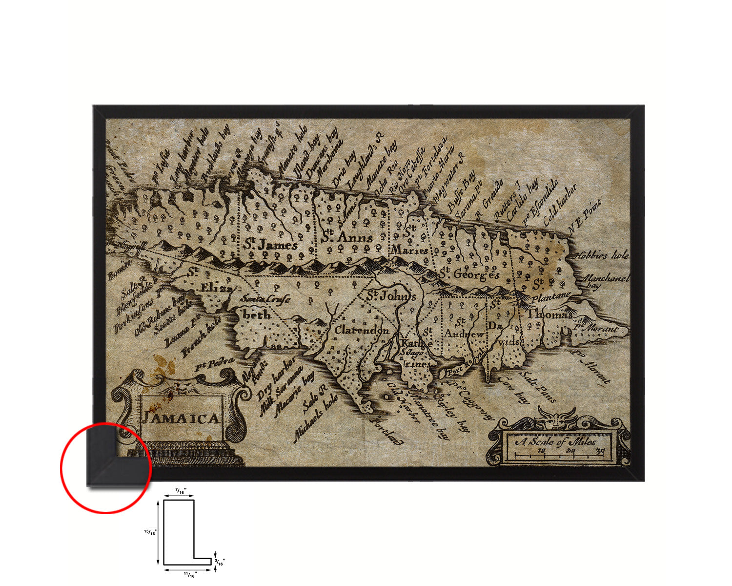 Jamaica John Speed 1675 Historical Map Framed Print Art Wall Decor Gifts