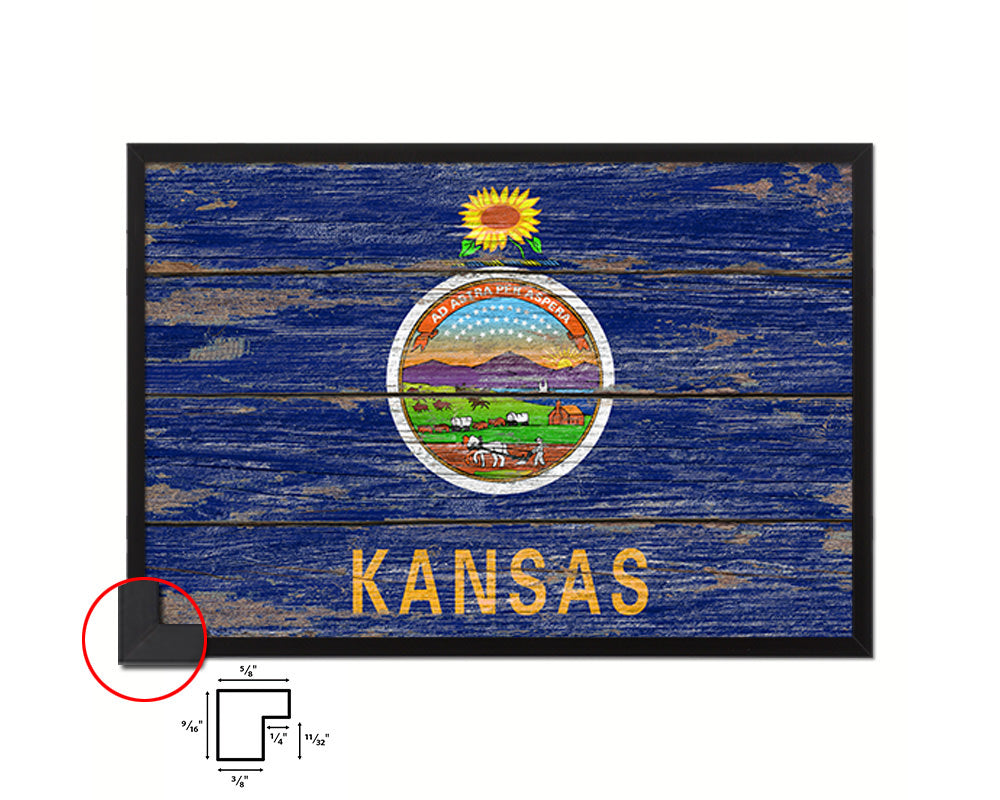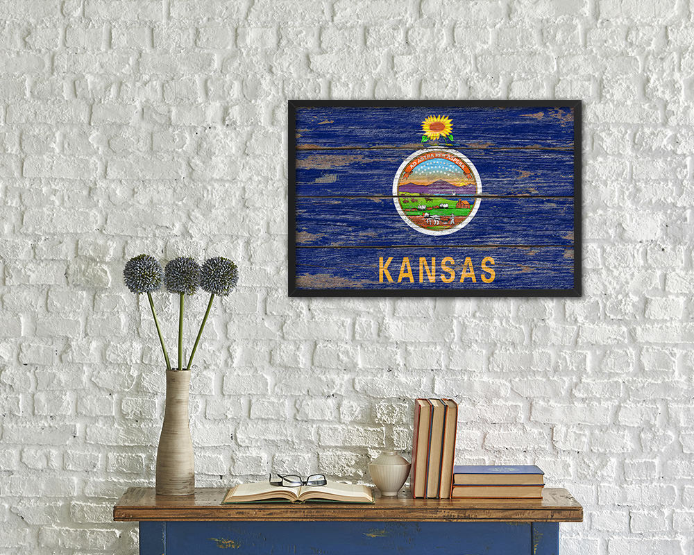 Kansas State Rustic Flag Wood Framed Paper Prints Wall Art Decor Gifts