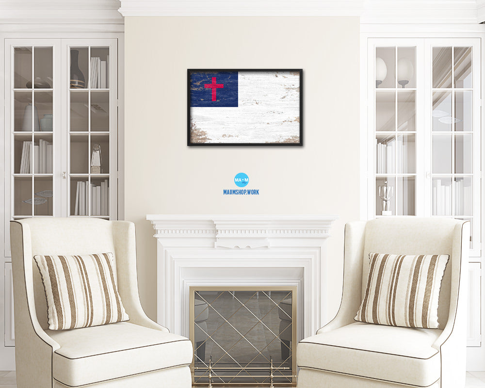 Kayso Christian Religious Shabby Chic Military Flag Framed Print Decor Wall Art Gifts