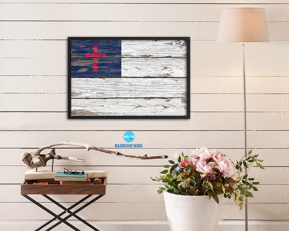 Kayso Christian Religious Wood Rustic Flag Wood Framed Print Wall Art Decor Gifts