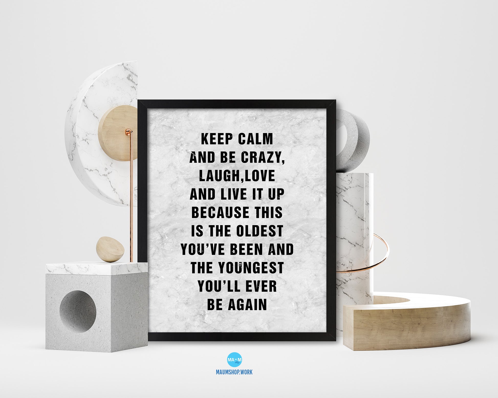 Keep calm and be crazy laugh love and live it up Quote Framed Print Wall Art Decor Gifts