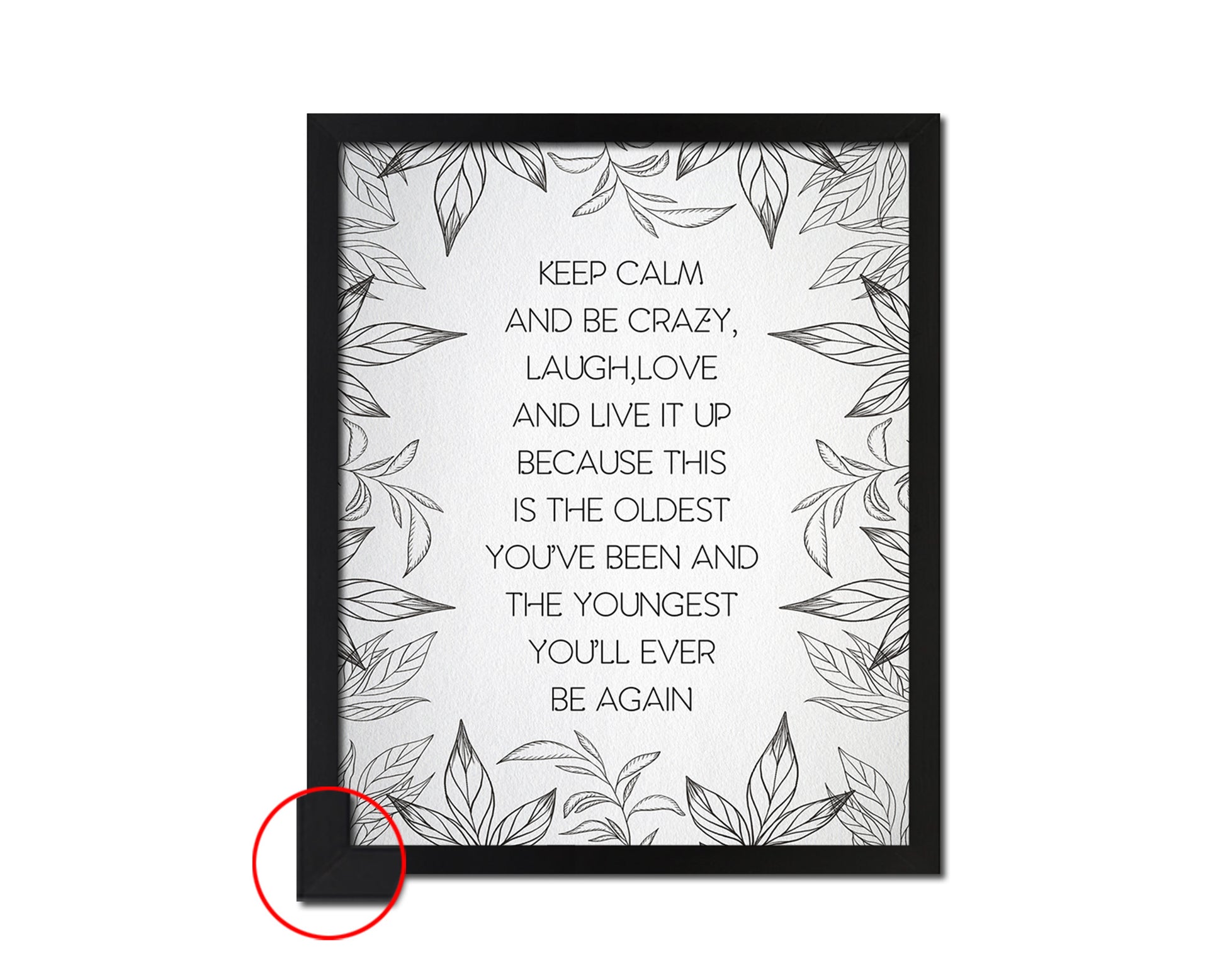 Keep calm and be crazy laugh love and live it up Quote Framed Print Wall Decor Art Gifts