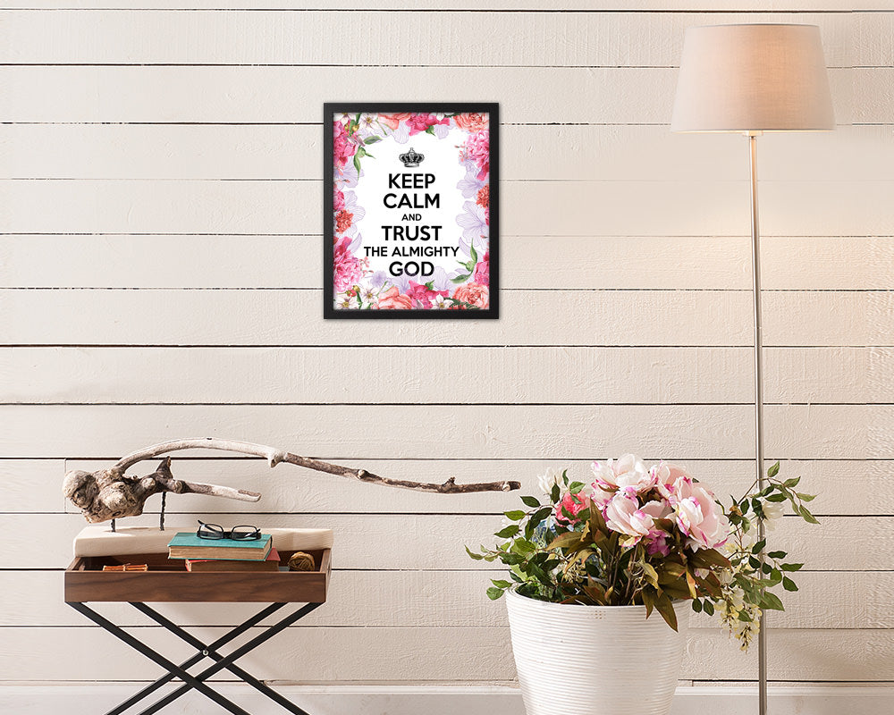 Keep calm and trust the alimighty God Quote Framed Print Home Decor Wall Art Gifts