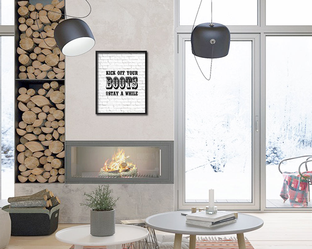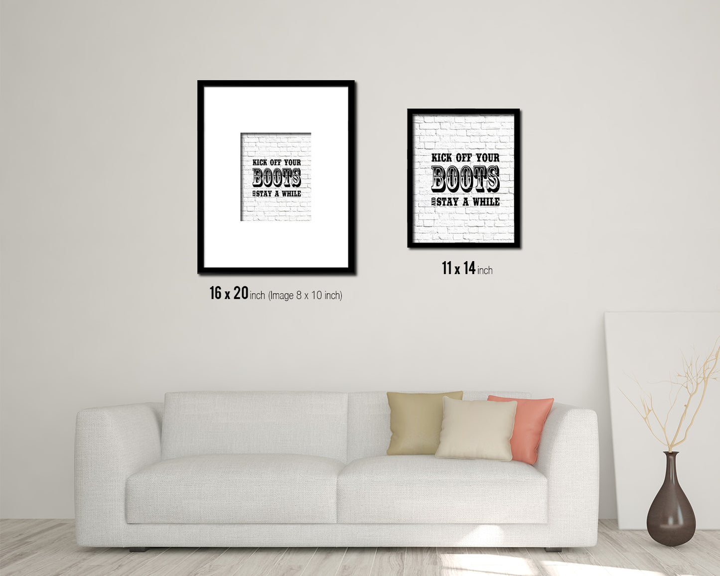 Kick off your boots and stay a while Quote Framed Artwork Print Home Decor Wall Art Gifts