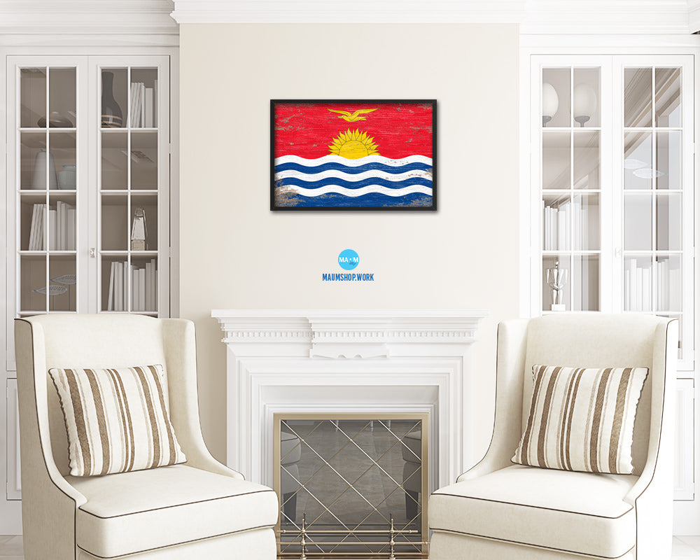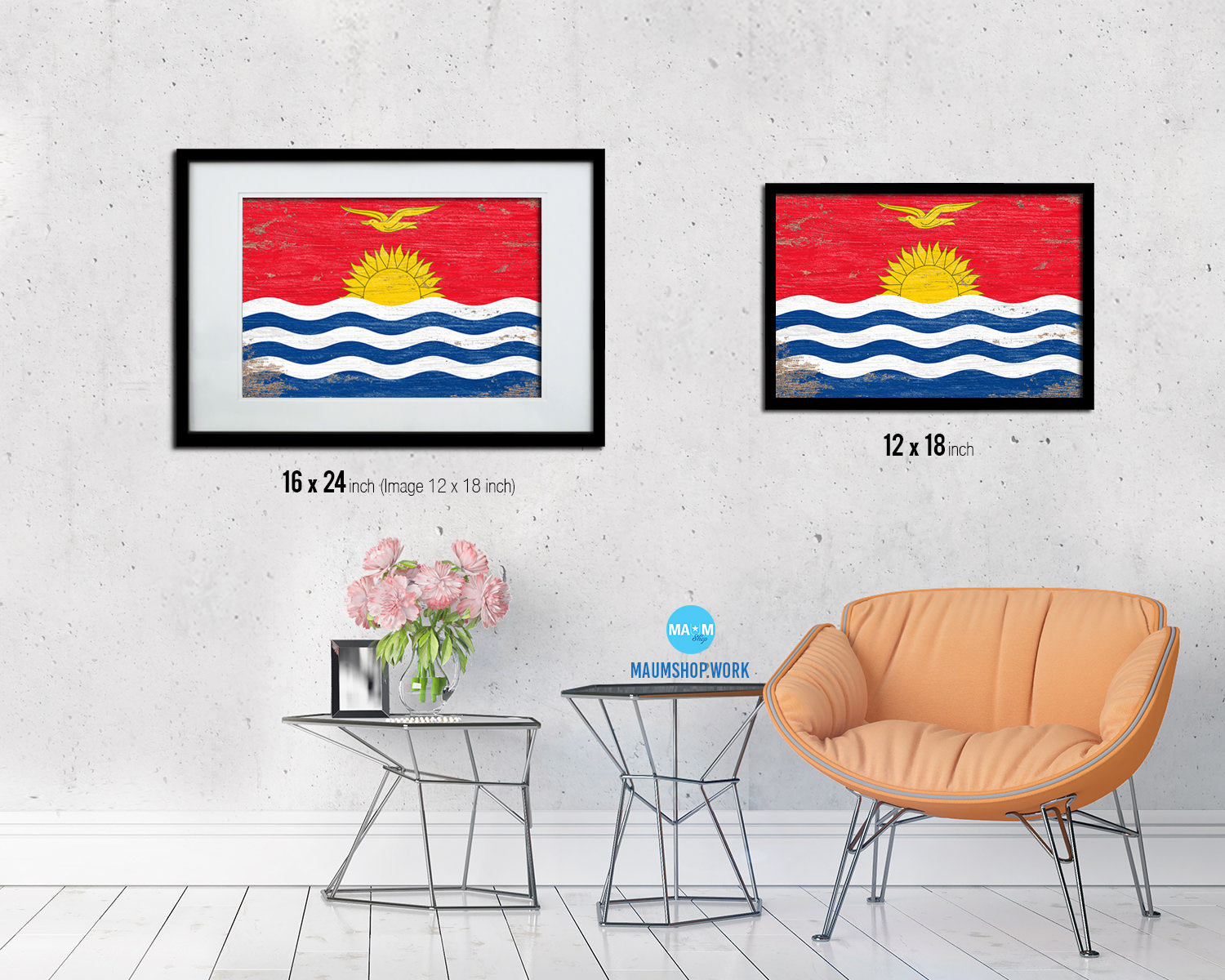 Kiribati Shabby Chic Country Flag Wood Framed Print Wall Art Decor Gifts