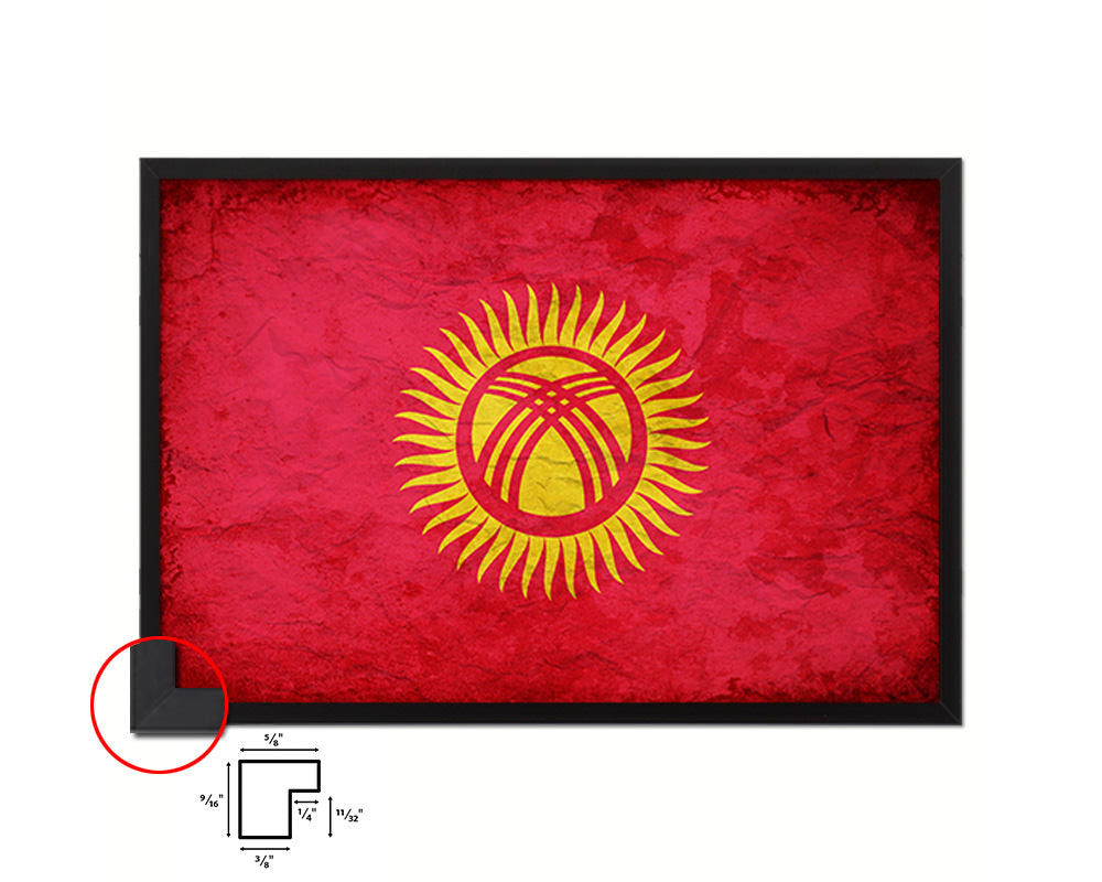 Kyrgyzstan Country Vintage Flag Wood Framed Print Wall Art Decor Gifts