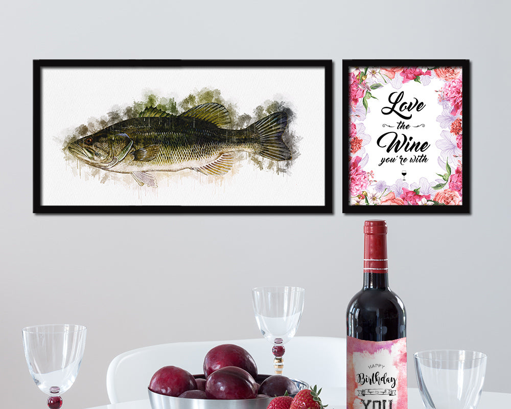 Largemouth Bass Fish Art Wood Frame Modern Restaurant Sushi Wall Decor Gifts, 10" x 20"
