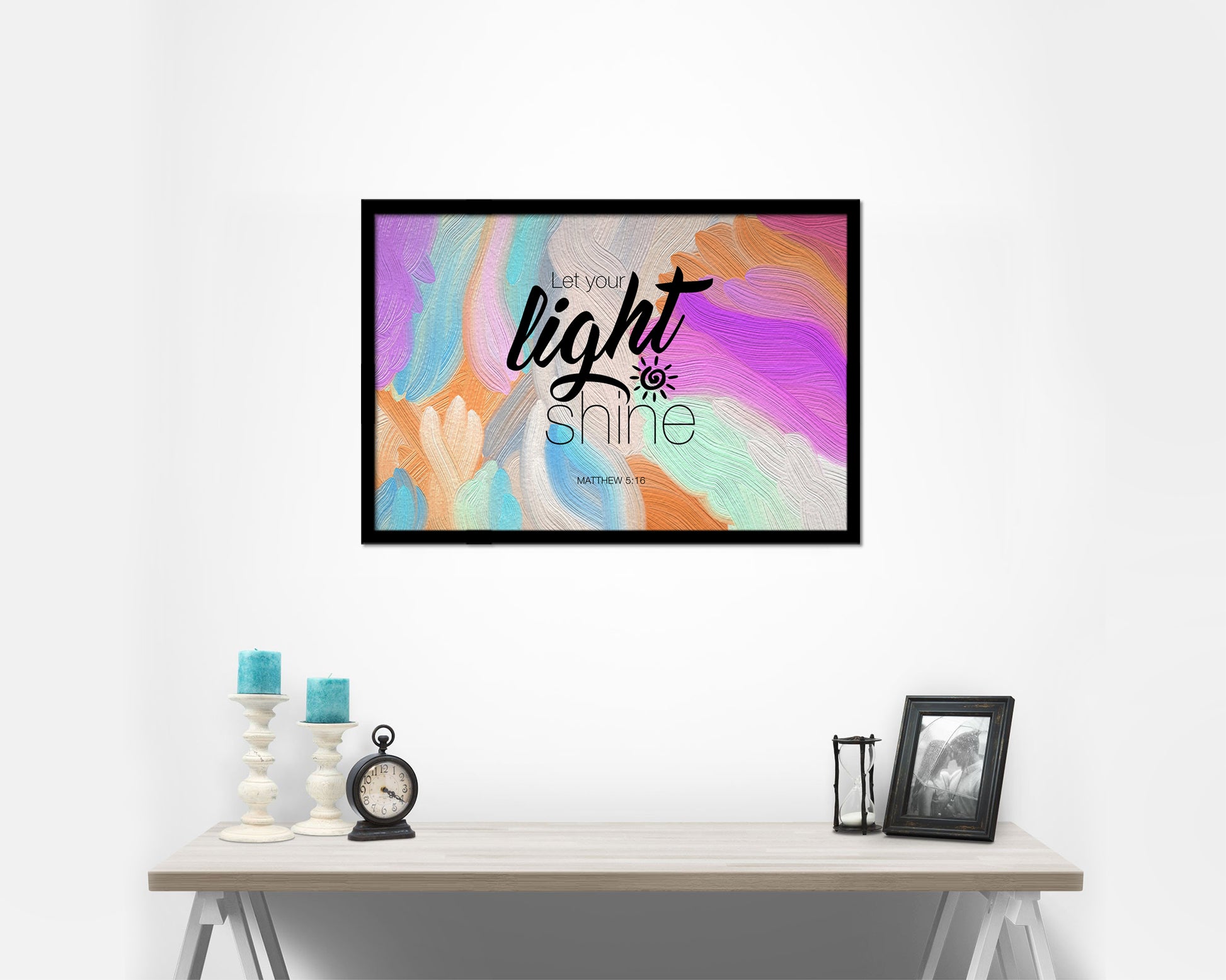 Let your light shine, Matthew 5:16 Bible Verse Scripture Framed Print Wall Decor Art Gifts