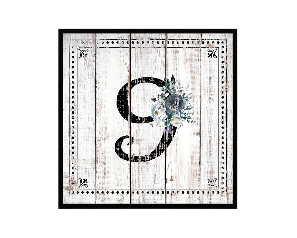Number 9 Custom Monogram Name Sign Framed Prints Wall Art Décor, White Wash Wood