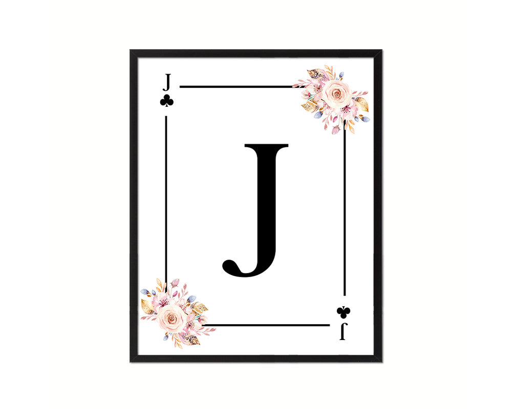 Letter J Custom Initial Boho Monogram Playing Card Framed Prints Wall Art